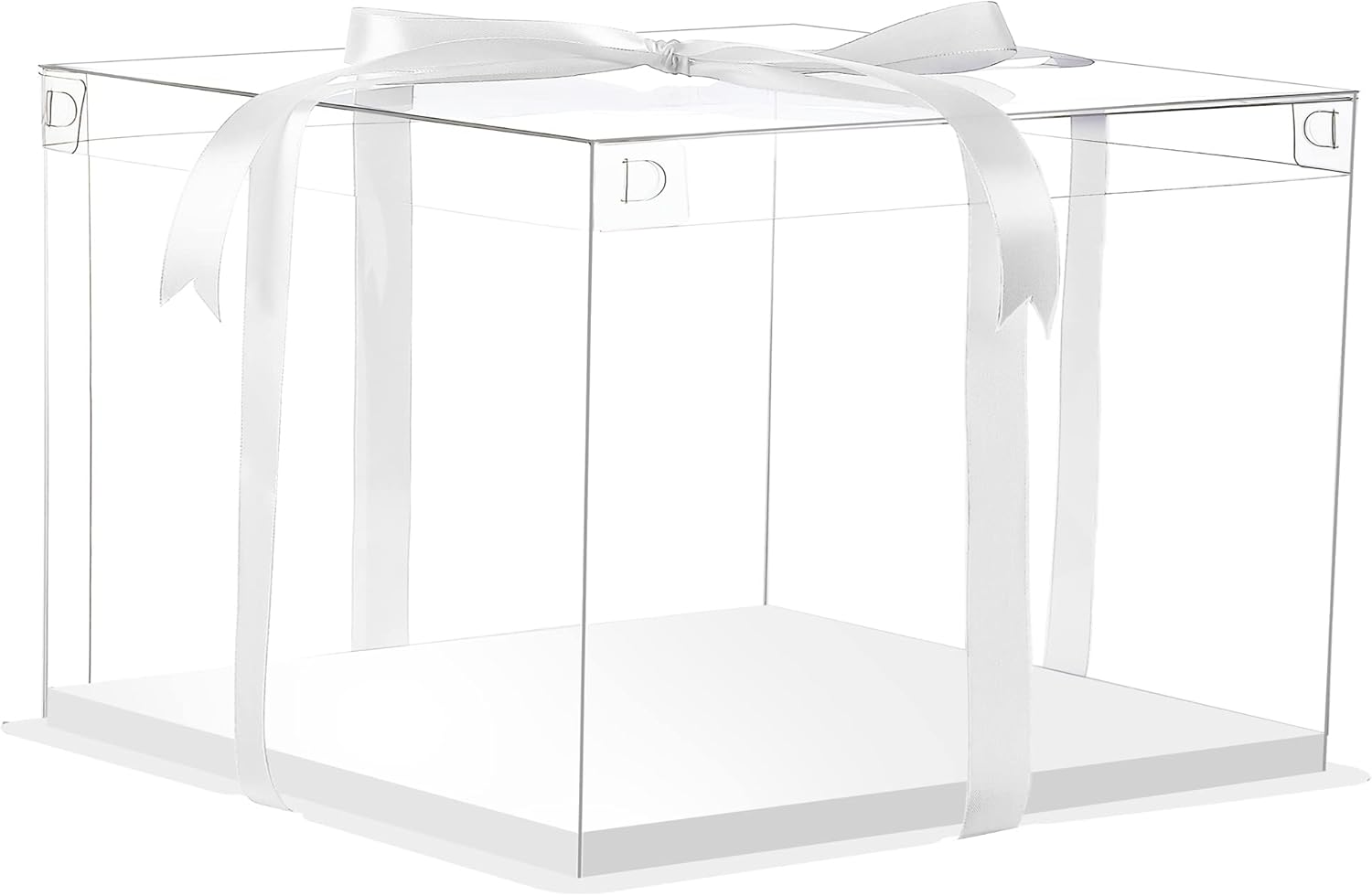 - 【Size and material】-The product includes 6 transparent cake boxes with A roll of white ribbon. Box size: 12"x12"x7", suitable for 10inch or 12inch cakes and gift packaging. Made of cardboard and PET materials, safe and durable. The top and middle part of the cake box are transparent, and the cake box bottom tray is white