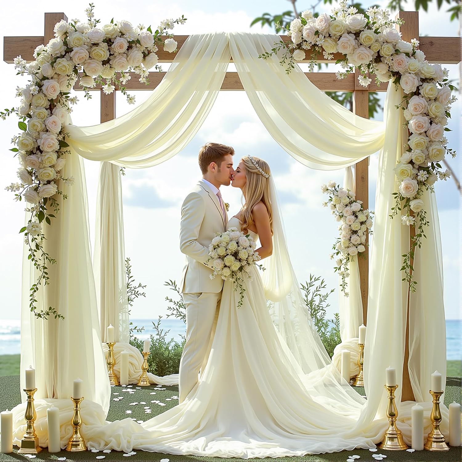 Wedding Arch Draping Fabric, 2 Panels 6 Yards Ivory Sheer Backdrop Curtain Chiffon Fabric Drapery for Wedding Ceremony Reception Swag Decorations (Ivory Drapes Curtain, (2 Panels) 6 Yards/36ft)
