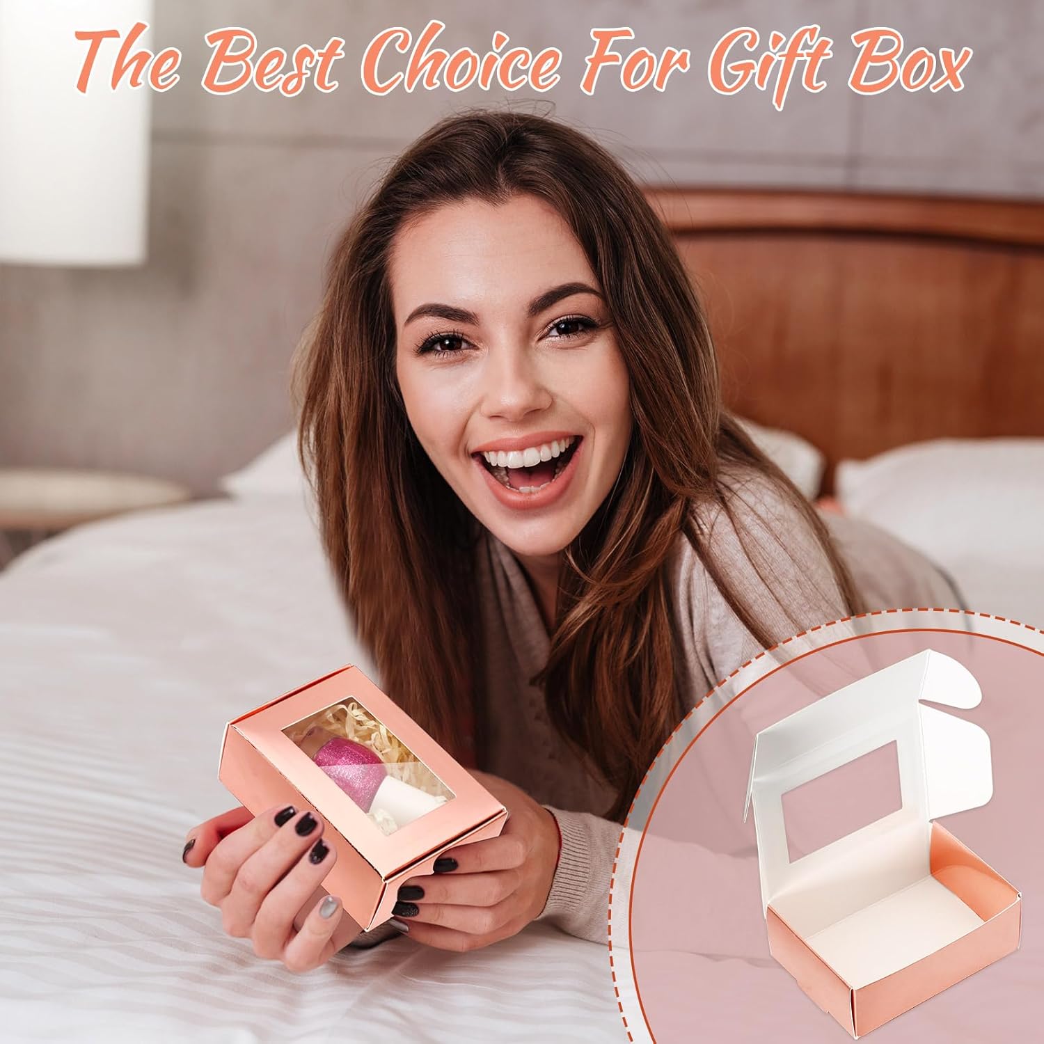 Zonon 30 Pcs Soap Boxes for Homemade Packaging, Mini Kraft Treat Boxes with Window for Bakery Candy Soap Making Gift Packaging(3.5 x 2.4 x 1.2 Inch,Rose Gold)
