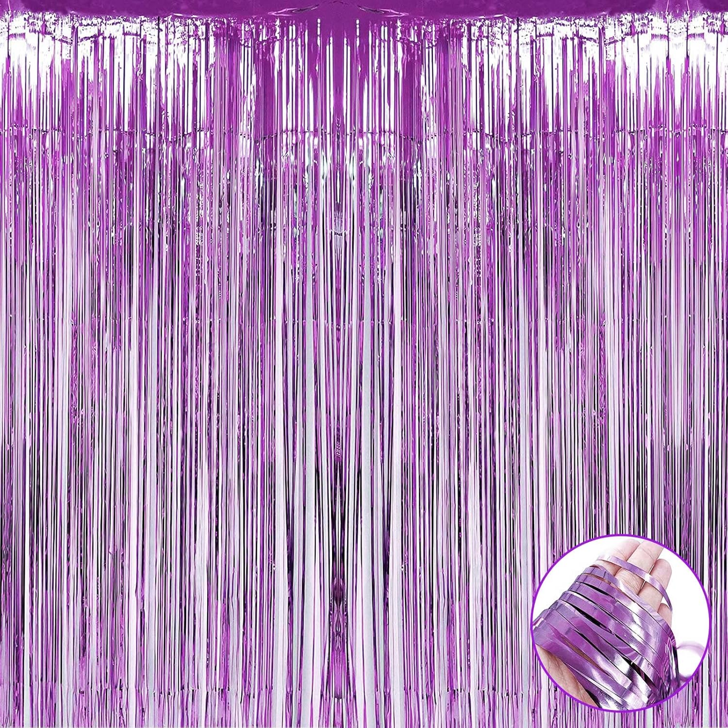 4 Pack Light Purple Foil Fringe Curtain Backdrop, 3.28Ft x 9.84Ft Metallic Tinsel Streamers Curtains for Party, Photo Booth Props, Birthday, 2022 Graduation Decoration Supplies