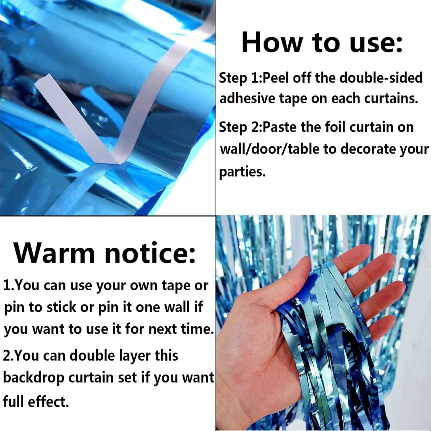 4 Pack Light Blue Foil Fringe Curtain Backdrop, 3.3Ft x 9.8Ft Metallic Tinsel Foil Fringe Streamers Curtains for Photo Booth, Wedding, Thanksgiving, Birthday, Christmas, Halloween Party Decoration
