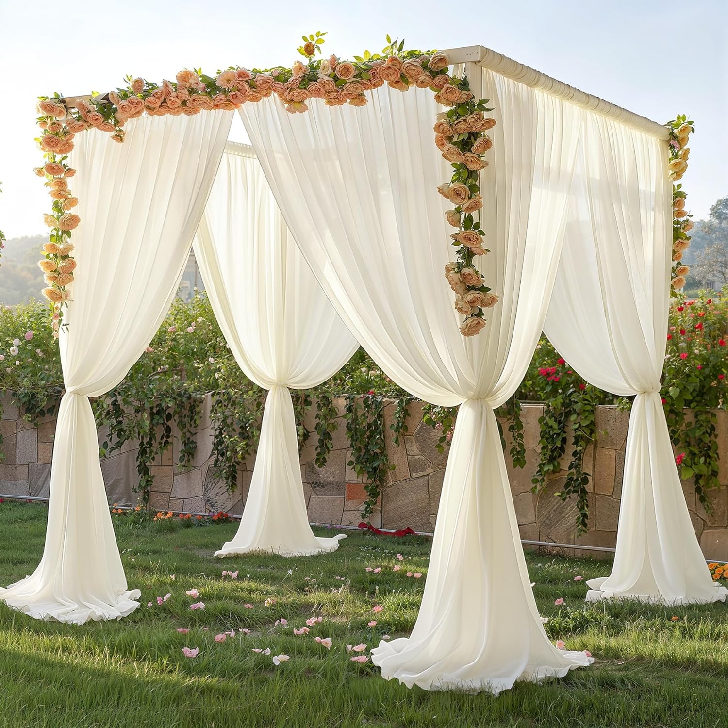 - 【Multipurpose and Versatile】- These ivory sheer chiffon backdrop curtains are applicable for any indoor and outdoor occasion either for decorative or functional uses: weddings arch, receptions, parties, bridal and baby showers, birthdays, candy buffets, dessert tables background, trade shows, wedding stages photography, photo booths, ceremony and more