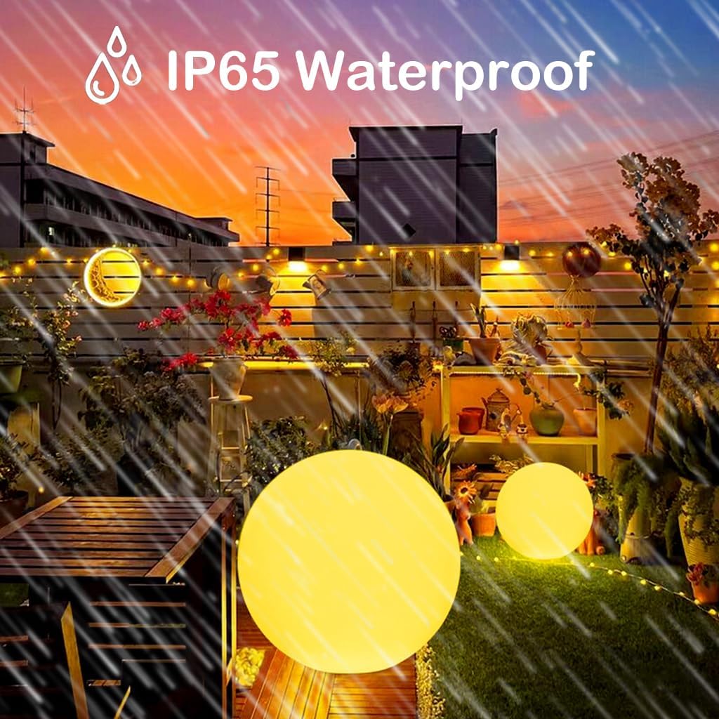 - Weatherproof & Durable: Built to withstand the elements, this rechargeable LED Ball Light is IP65 waterproof, ensuring reliable performance in rain or shine. Its sturdy construction makes it ideal for long-term outdoor use in gardens, patios, and lawns