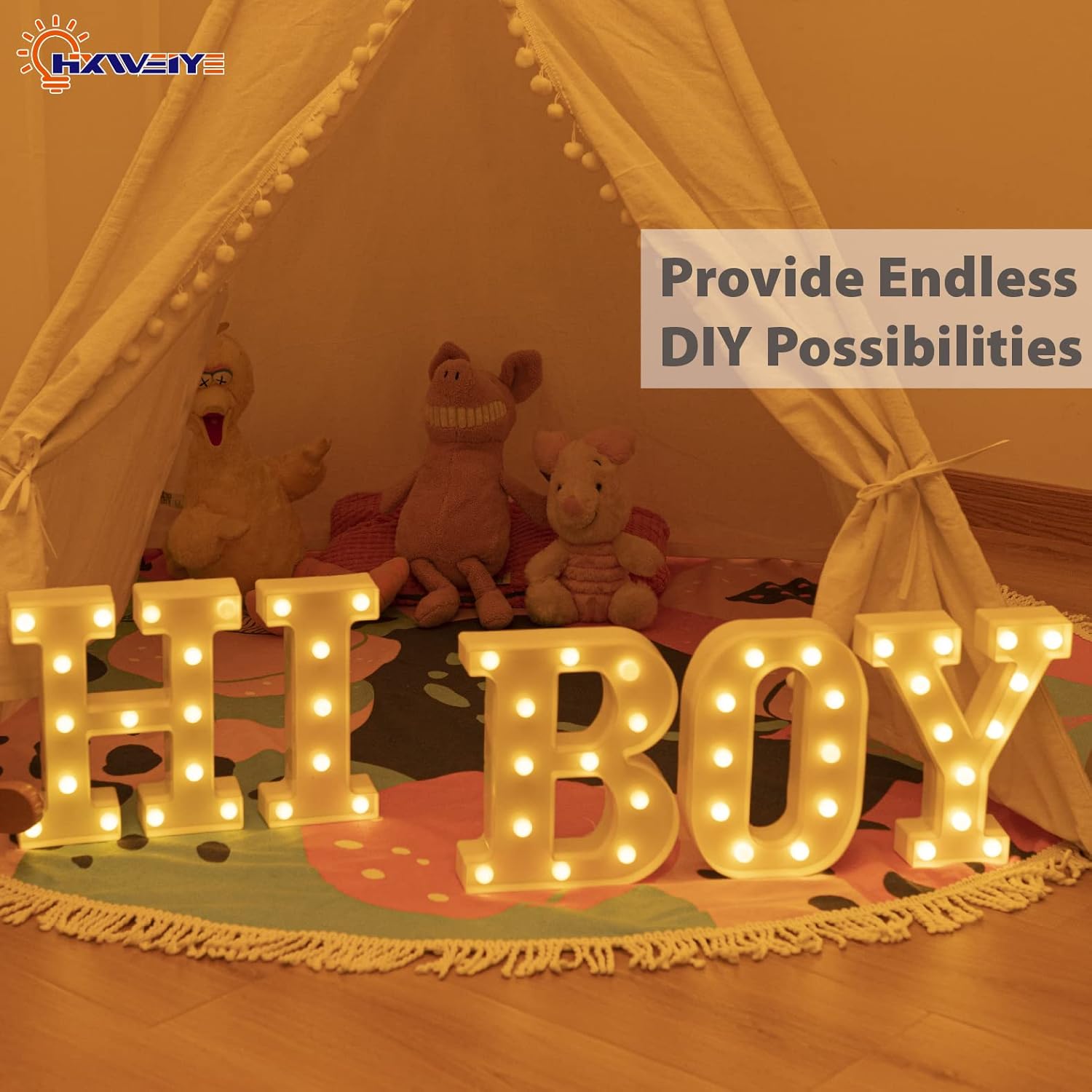 - 【Widely Used】: These led letters can light up your favorite words in various festival occasions, themed parties event, Christmas and interior and exterior decoration. Surprise your friend or loved one with their initial or name in lights up sign! An ideal gift for Christmas, Birthdays, Baby Showers, teens, Weddings, Party, Anniversaries, bars, cafes, pets and every important day decoration.