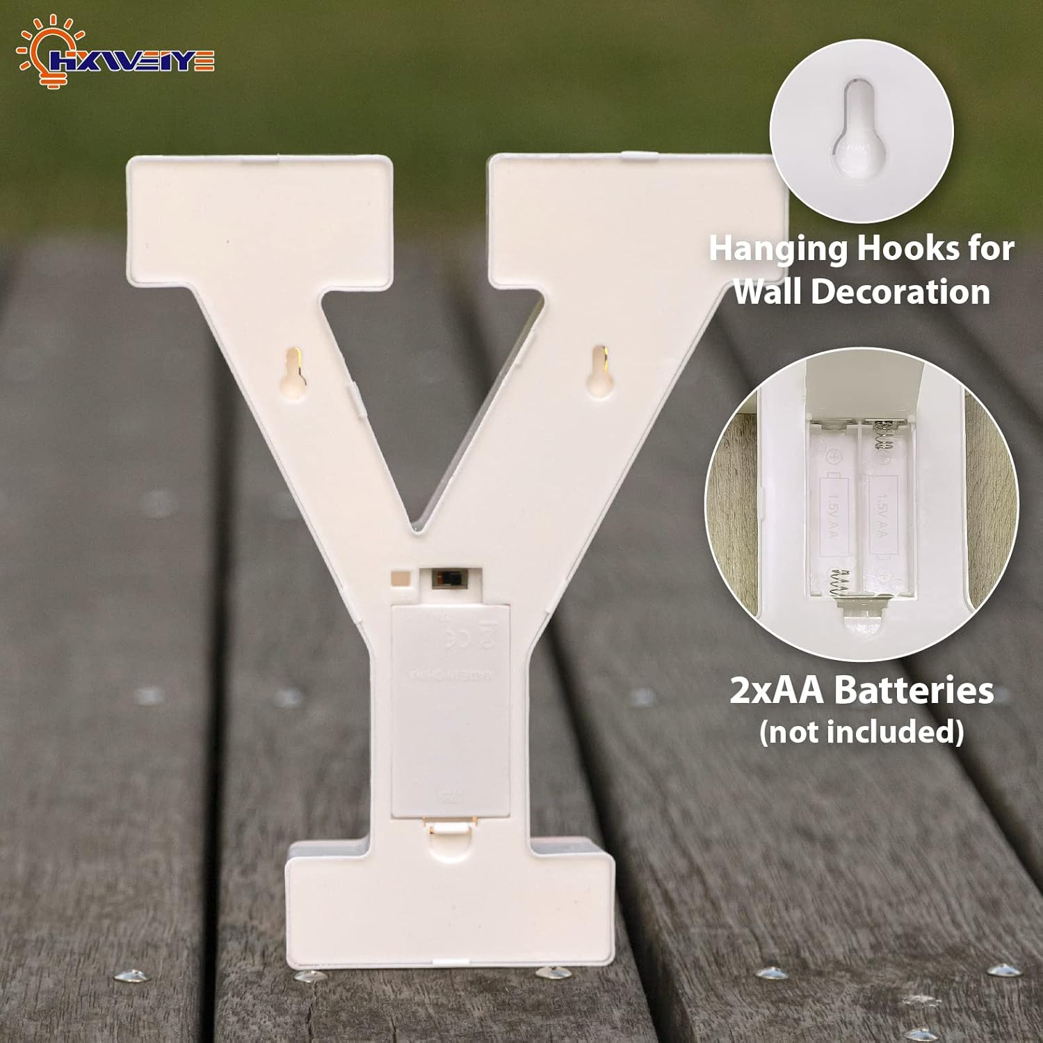LED Marquee Letters Lights Sign Y, HXWEIYE Led Letter Lights 26 Alphabet, Light Up Number 0-9 Letters Sign Warm White for Party Home Birthday Anniversary Battery Powered (9 * 7.3 * 1.8IN)
