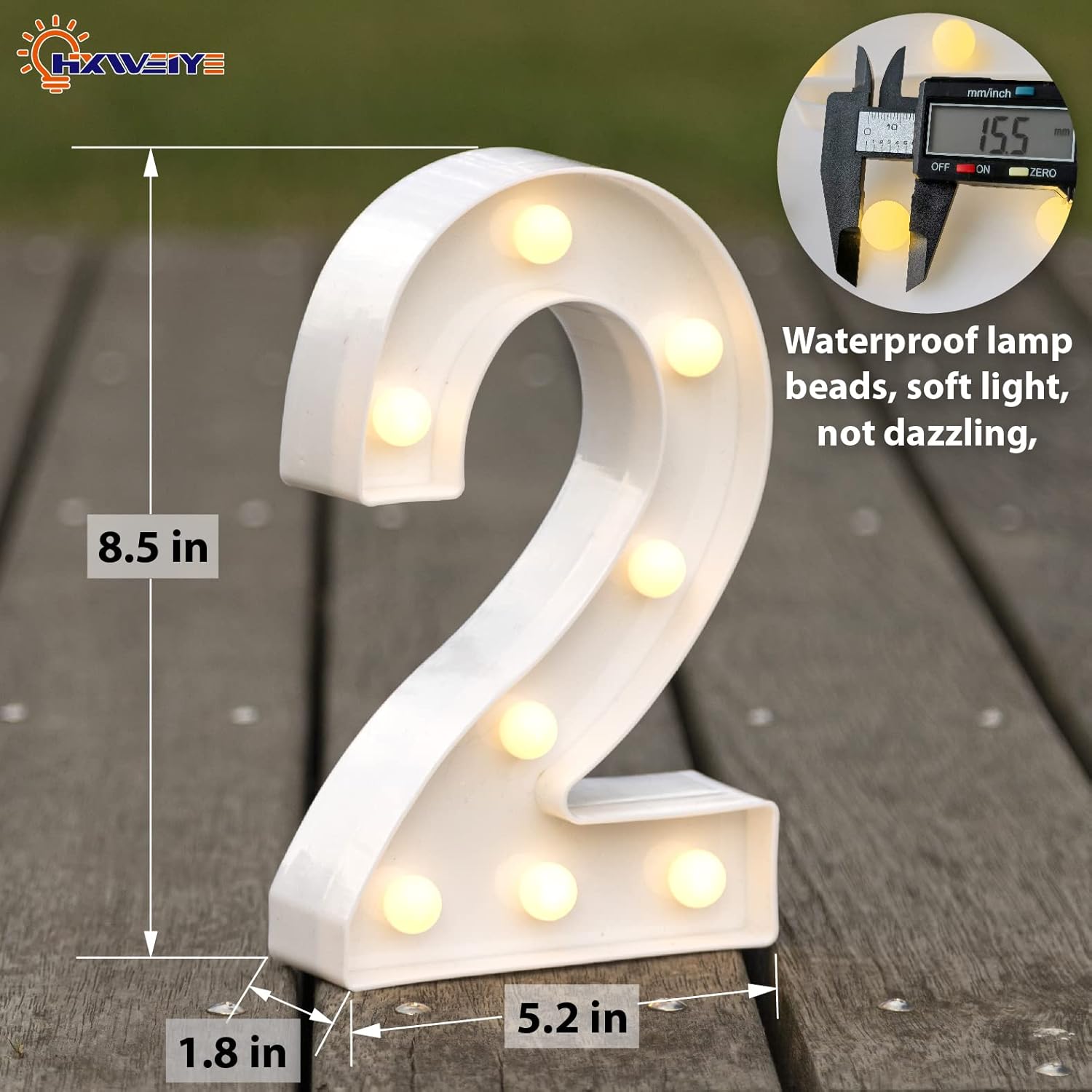 HXWEIYE Light Up Numbers-2, LED Marquee Number Lights Sign 26 Alphabet and 10 Number Big Light Led Letters for Party Birthday Bar Battery Powered Christmas Decor Letter Lights (Warm White)