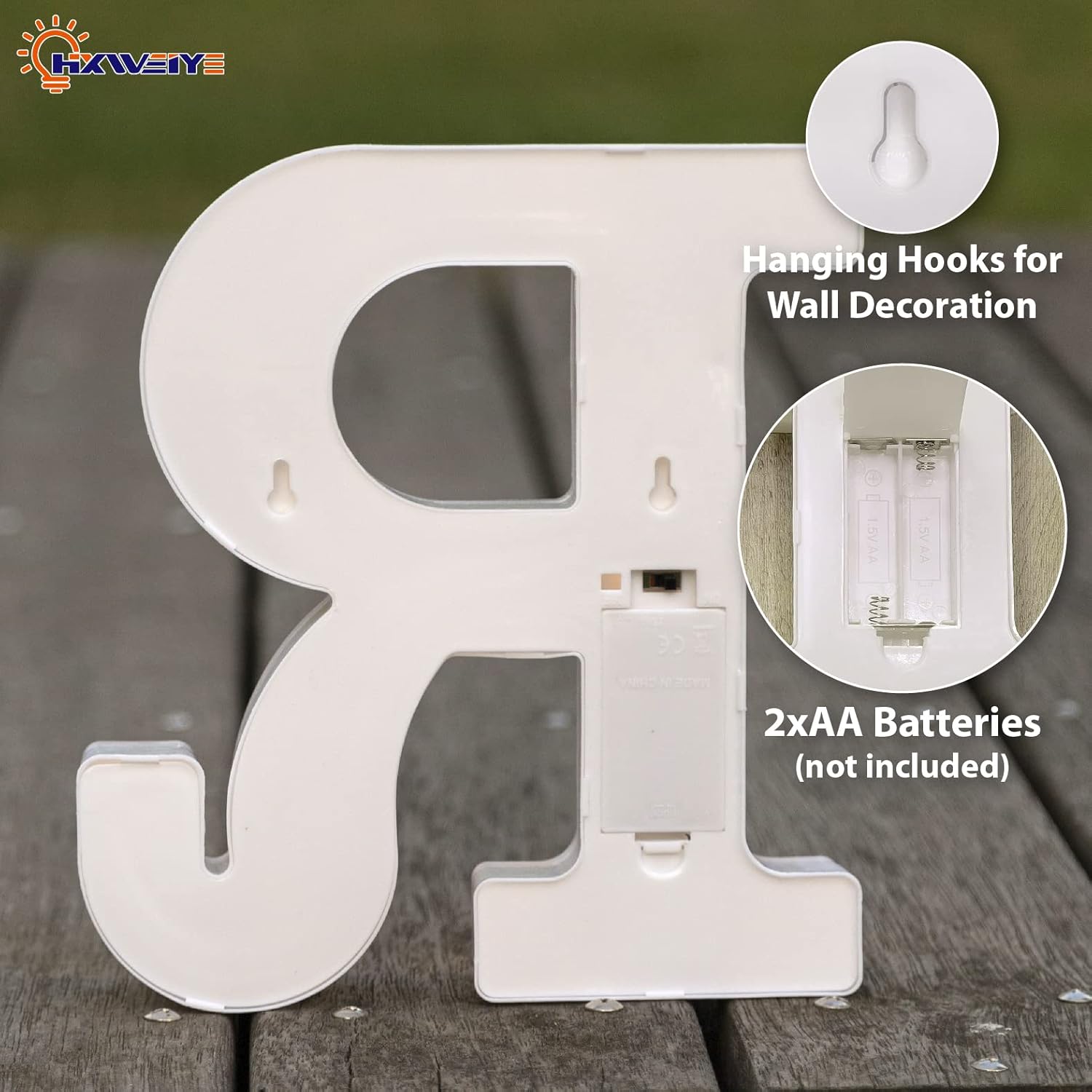 HXWEIYE LED Marquee Letters Lights Sign R, 26 Alphabet Light Up Letter and Number 0-9 Number Warm White Led Letters for Bar Party Birthday Home Wedding Décor