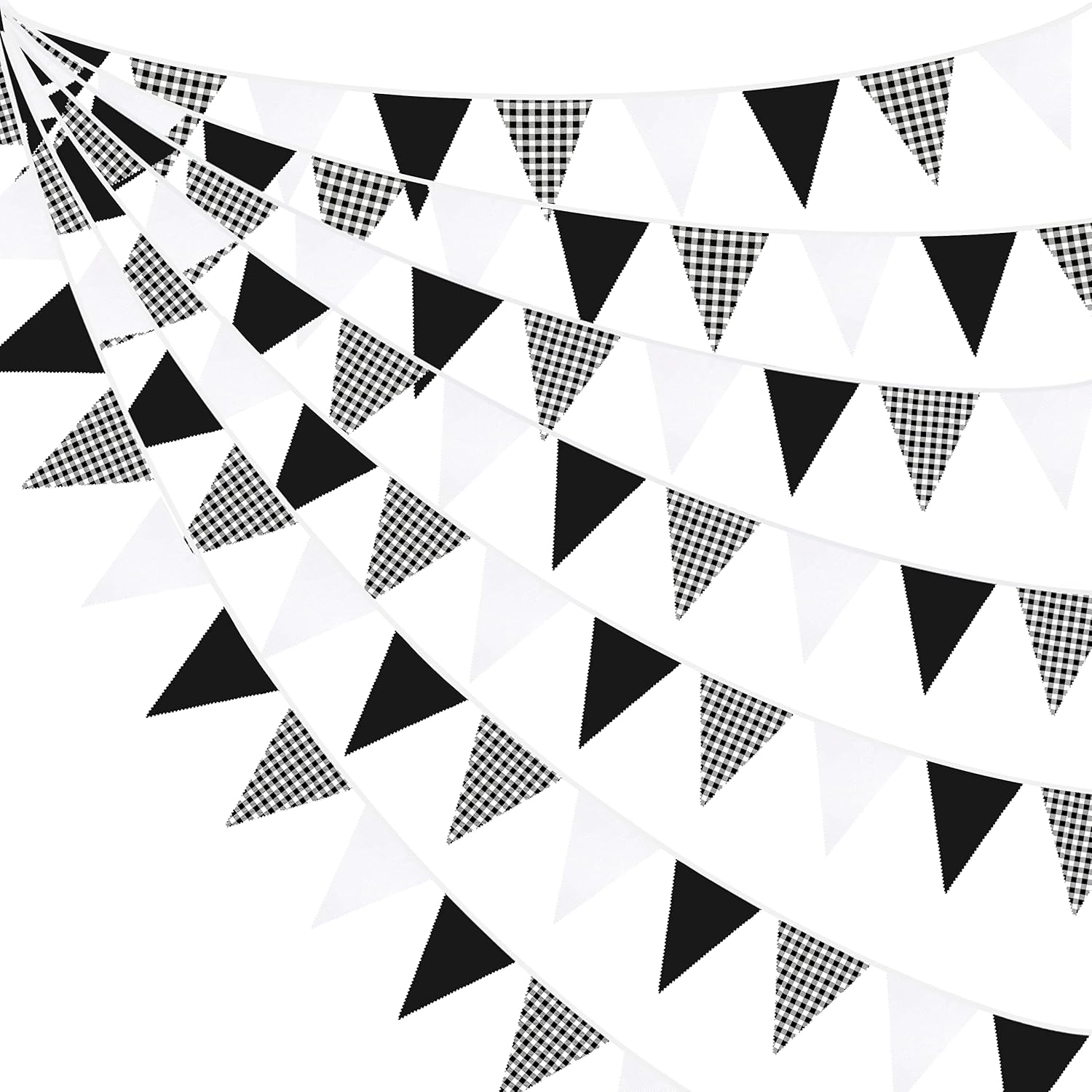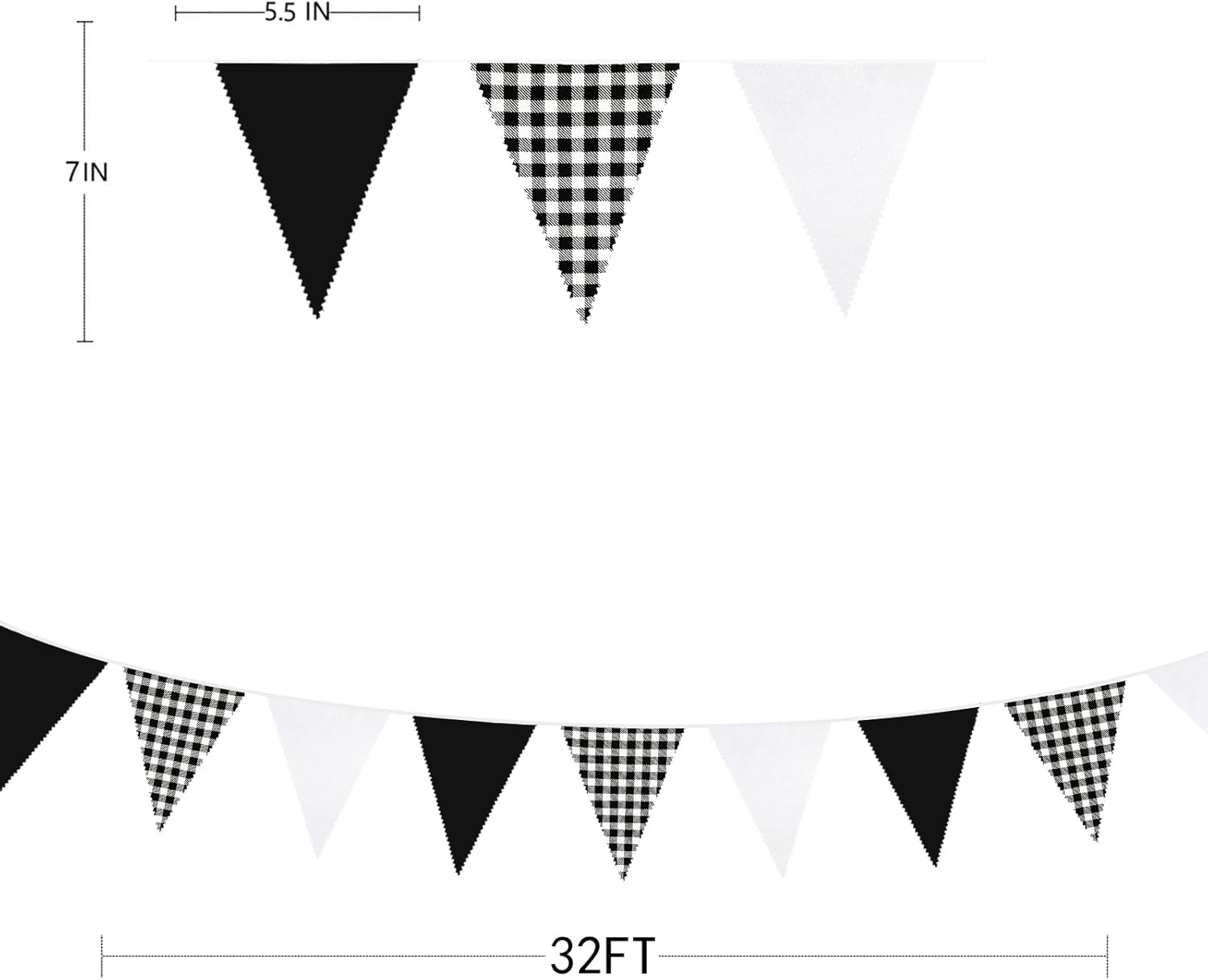 - 【Package Contains】1 pack fabric bunting banner garland in black white checkered, black and white colors, with 36pcs flags in 10M/32.8Feet. Flag Size: 5.5in width x 7in height.