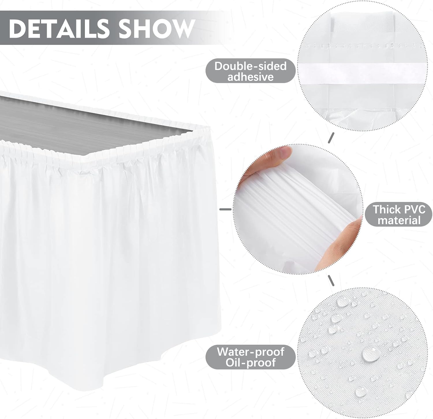 TURSTIN 6 Pieces White Plastic Table Skirts 14 Feet x 29 Inch for Rectangle Tables Fitted Tablecloth Disposable Table Cover for Birthday Party, Events, Banquette Baby Shower