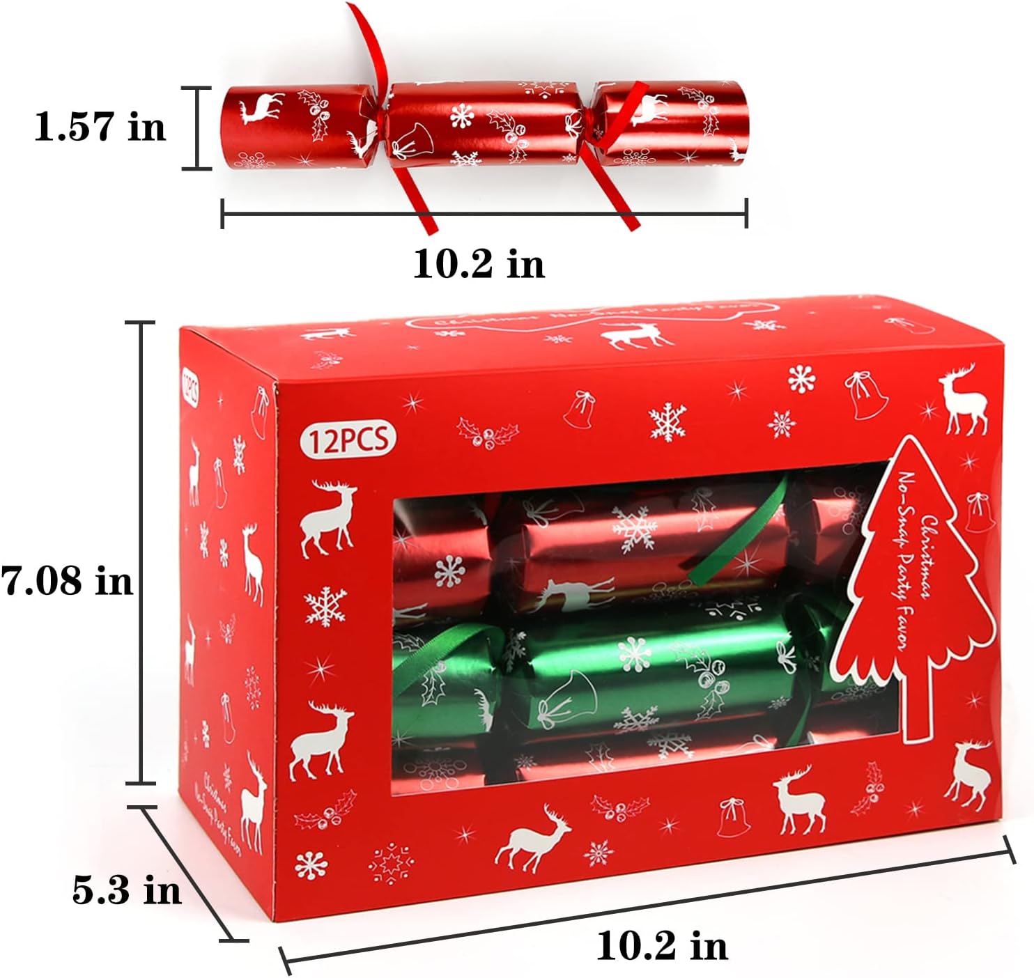 12 Pack Christmas No-snap Party Table Favors, Christmas themed Holiday Supplies with Party Hat, Joke & Little Gift Inside for Kids Adults Xmas Gift