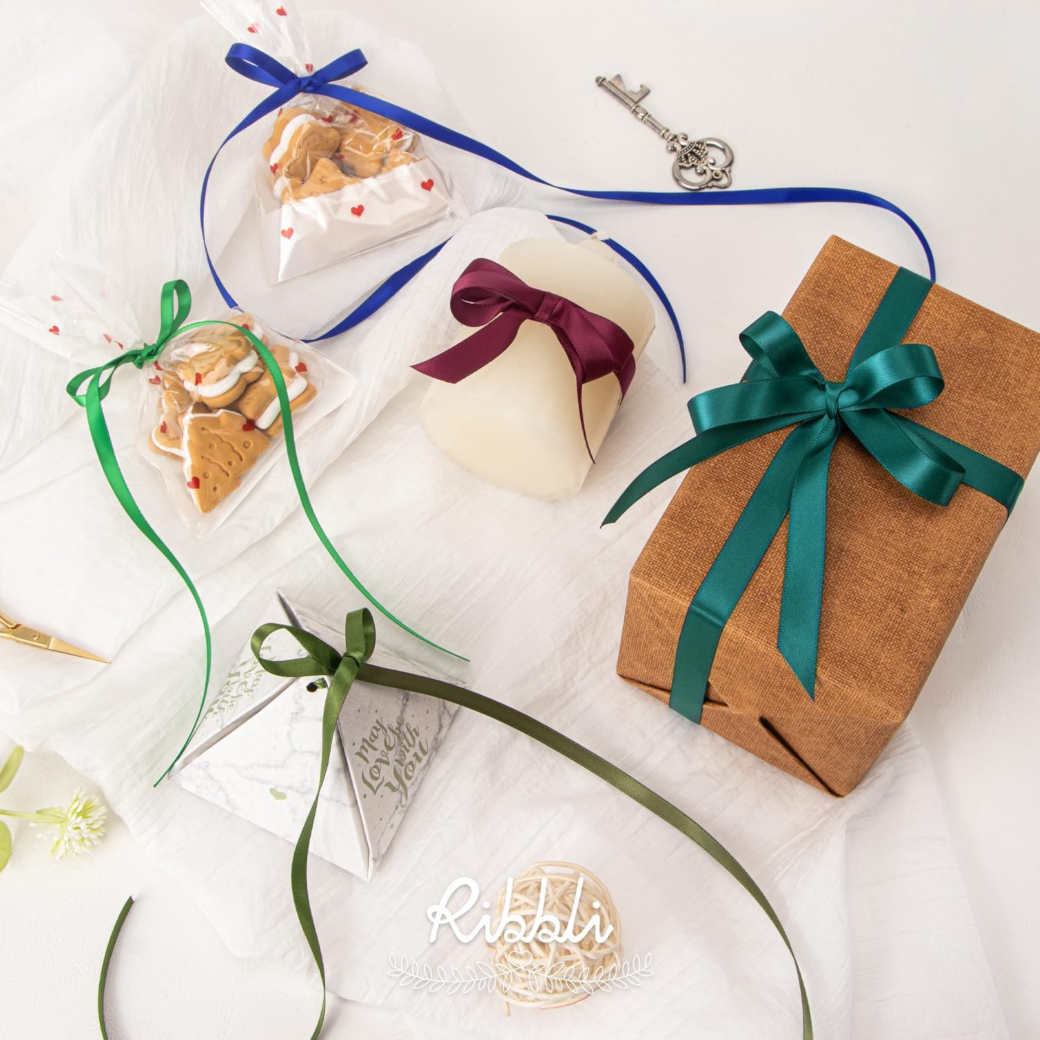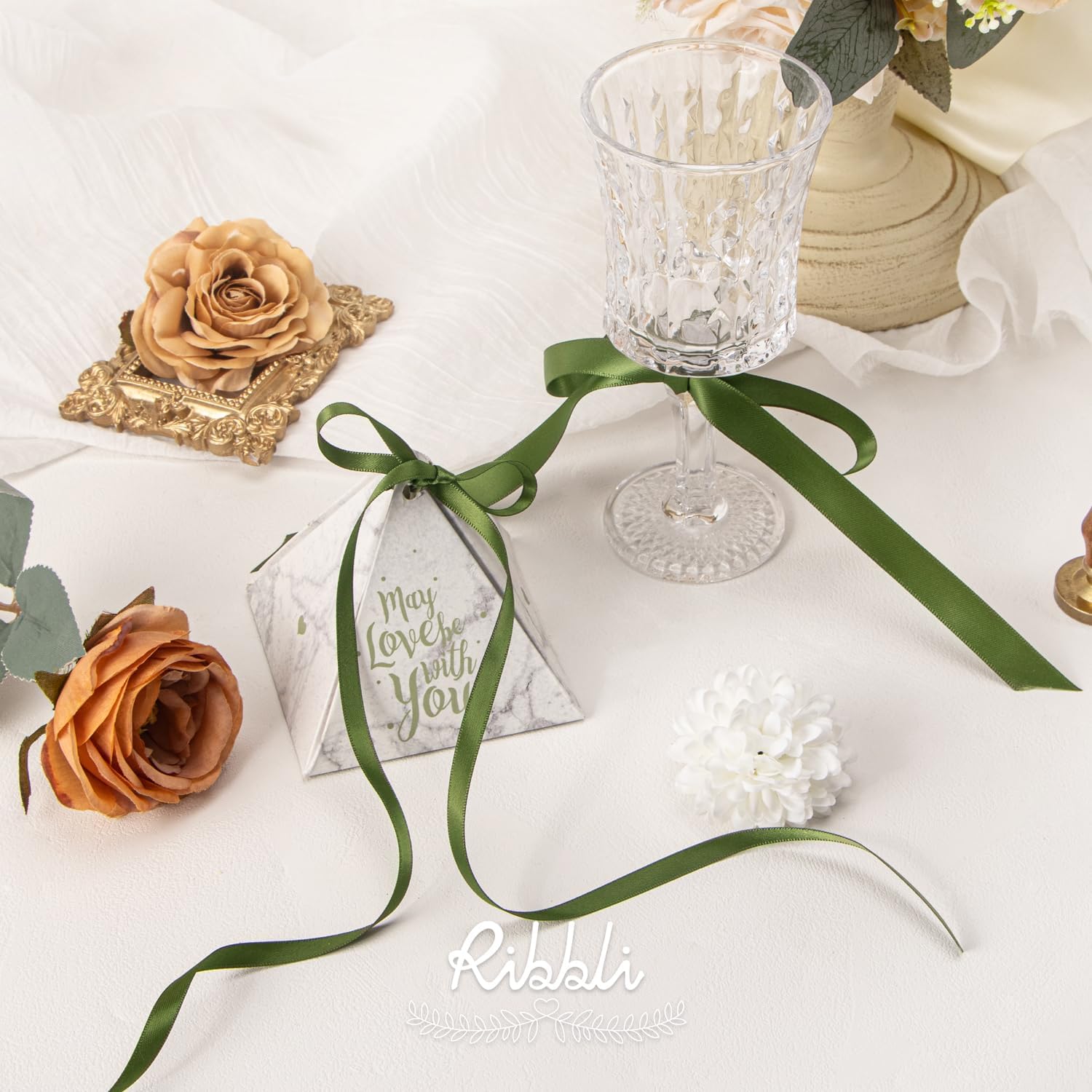 Ribbli Moss Green Satin Ribbon,Double Faced Satin 1/2 inch x Continuous 25 Yards,Use for Bows Bouquet,Gift Wrapping,Wedding Decoration,Floral Arrangement