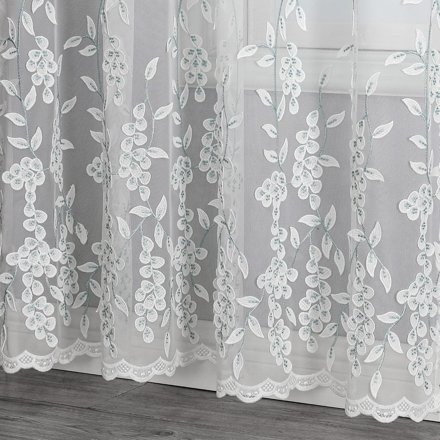 - Elegant sheer curtains with embossed leaf pattern bring natural charm to any room