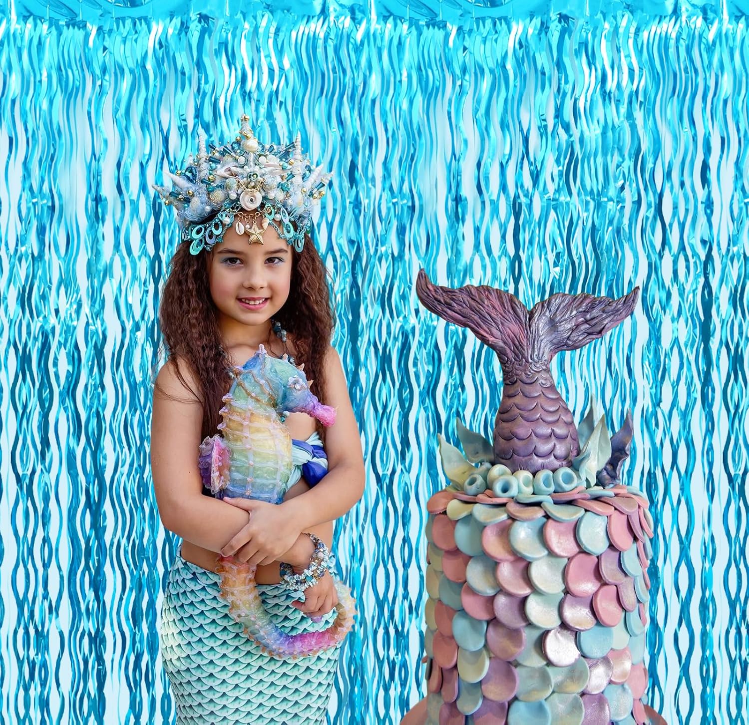 - Package Includes:2 pack wavy light blue foil fringe curtains,3.2 ft x 6.5 ft each,suitable for hanging on a door or coverage a wall fully