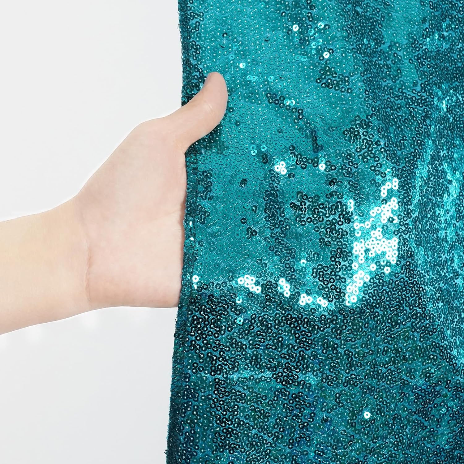 - 🌹【NOT SEE THROUGH SEQUIN BACKDROP】Package contains 1Pc 8ft width by 8ft height teal satin sequin backdrop! The biggest highlight of this glitter backdrop is that its non-transparent property, the backing of this backdrop is cloth, not mesh, so lights will be blocked about 99%.