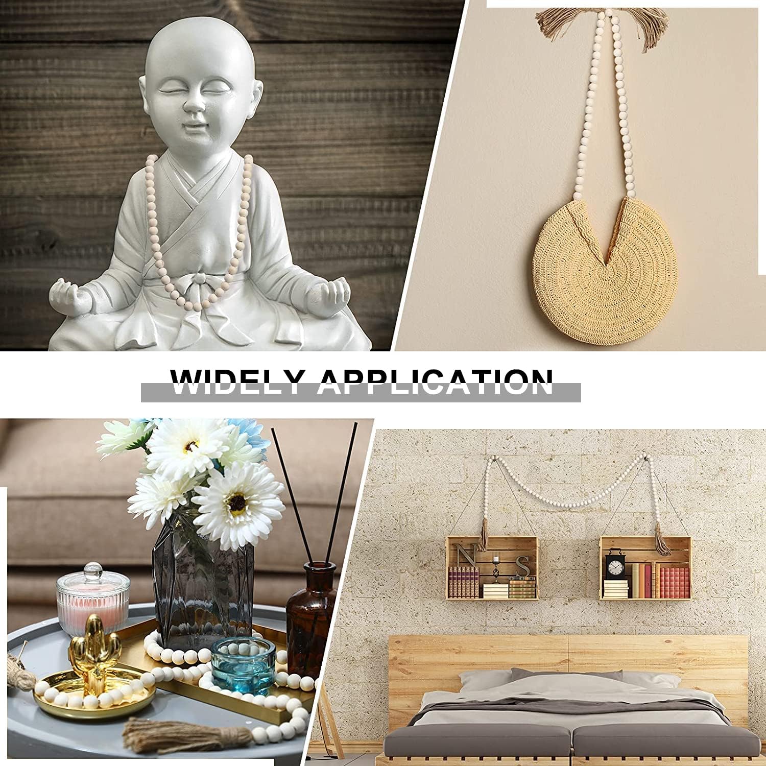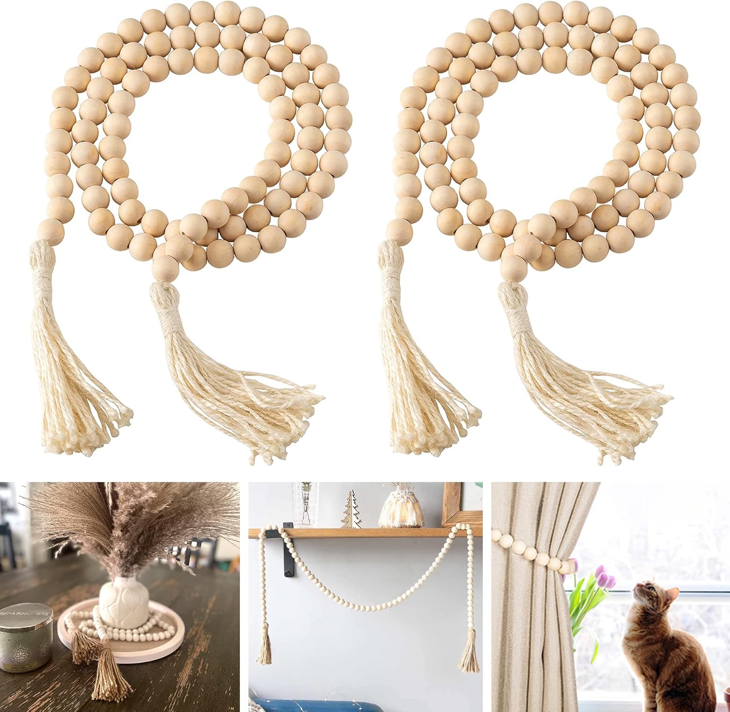 DECORKEY Farmhouse Wood Beads Garland, 2 Pack 58 Inch Wooden Beads for Boho Home Decor with Tassels, Rustic Country Decor for Coffee Table, Wall, Shelf, Tray, Vase, Living Room, Bedroom