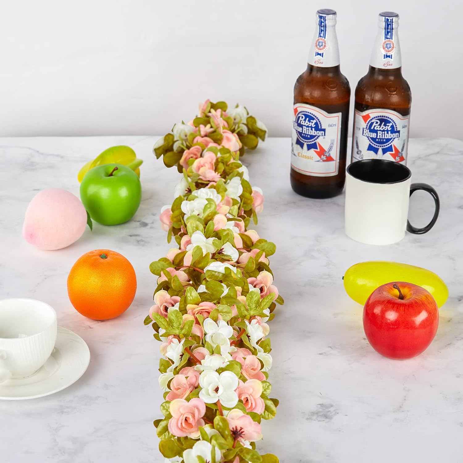 - Material & Features: PONKING fake rose garland is made of silk and plastic. Durable silk and plastic flowers ensures durability and no risk of leaves or flowers dying. The rose vine spares you from endless watering. Different from real rose flowers, our artificial vines with rich color layers and natural appearance will never fade. They will last forever. Nice choice for your daughter's bedroom