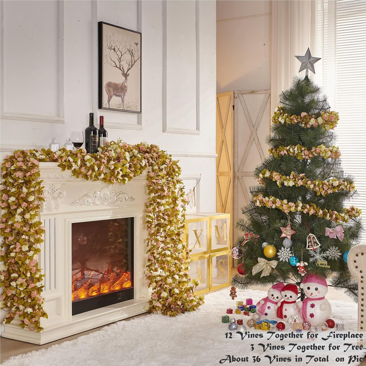 - Multi-use rose vine: With the vibrant color, PONKING fake rose vines are ideal for your wedding, party, vlentines, Christmas, birthday, DIY bouquets, arch home room decor, etc. They could also decorate your space with the string lights(not included). Adding more romantic atmosphere to you all