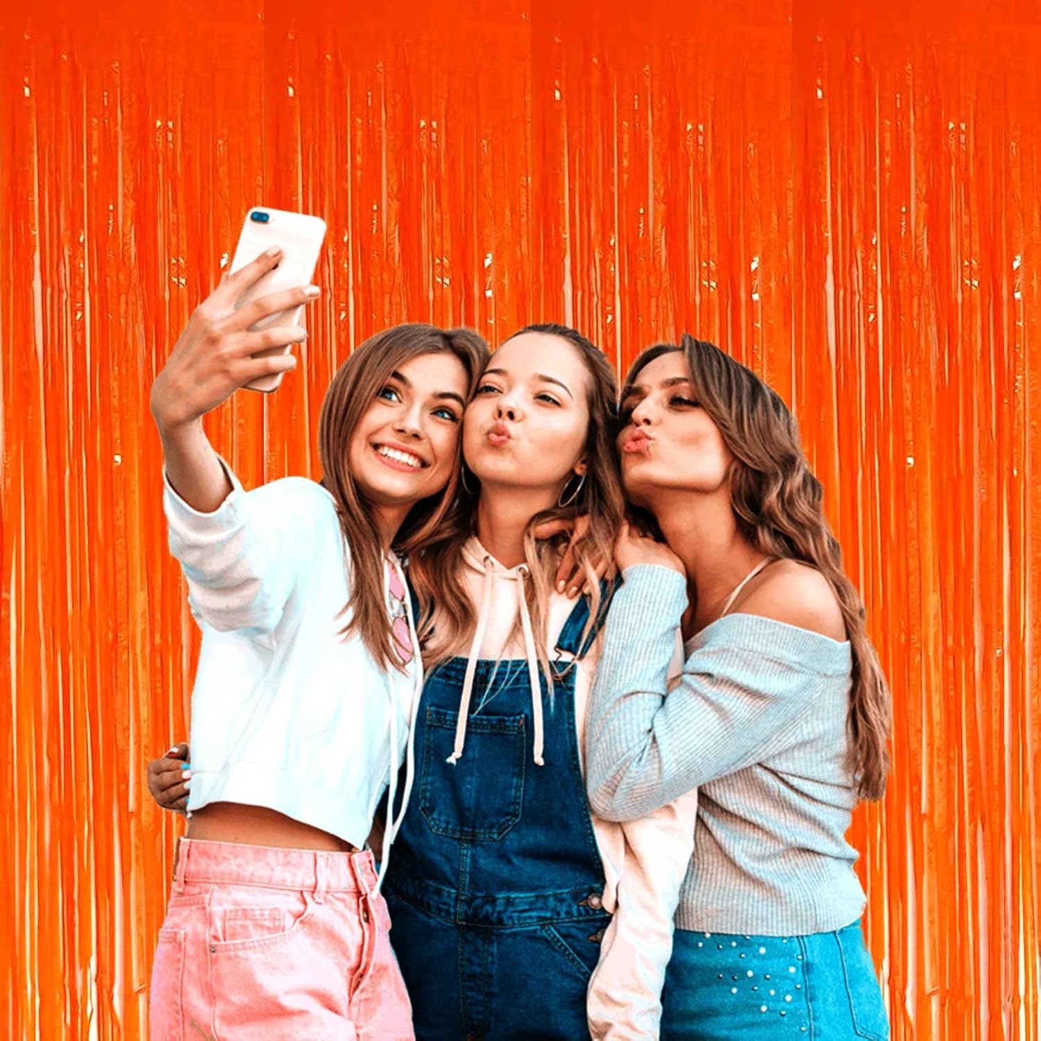4 Pack Macaron Orange 8.2Ft Tinsel Foil Fringe Curtain Backdrop, 3.28Ft Metallic Streamers for Photo Booth Props Bachelorette Birthday Halloween Christmas Party Decoration