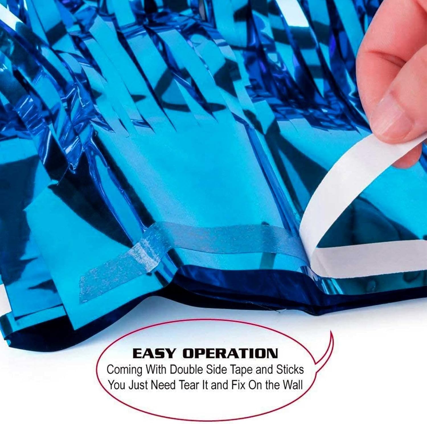 4 Pack Lake Blue Foil Fringe Curtain Backdrop, 3.3Ft x 9.8Ft Metallic Tinsel Foil Fringe Streamers Curtains for Photo Booth, Wedding, Thanksgiving, Birthday, Christmas, Halloween Party Decoration