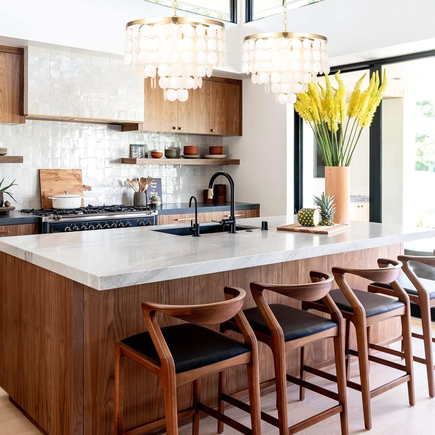 ALICE HOUSE 18.2" White Shell Chandeliers, Brushed Brass Finish, Coastal Kitchen Island Light Fixture, 4 Light Modern Pendant Light for Dining Room, Entryway and Bedroom, ETL Listed, AL2608-P4