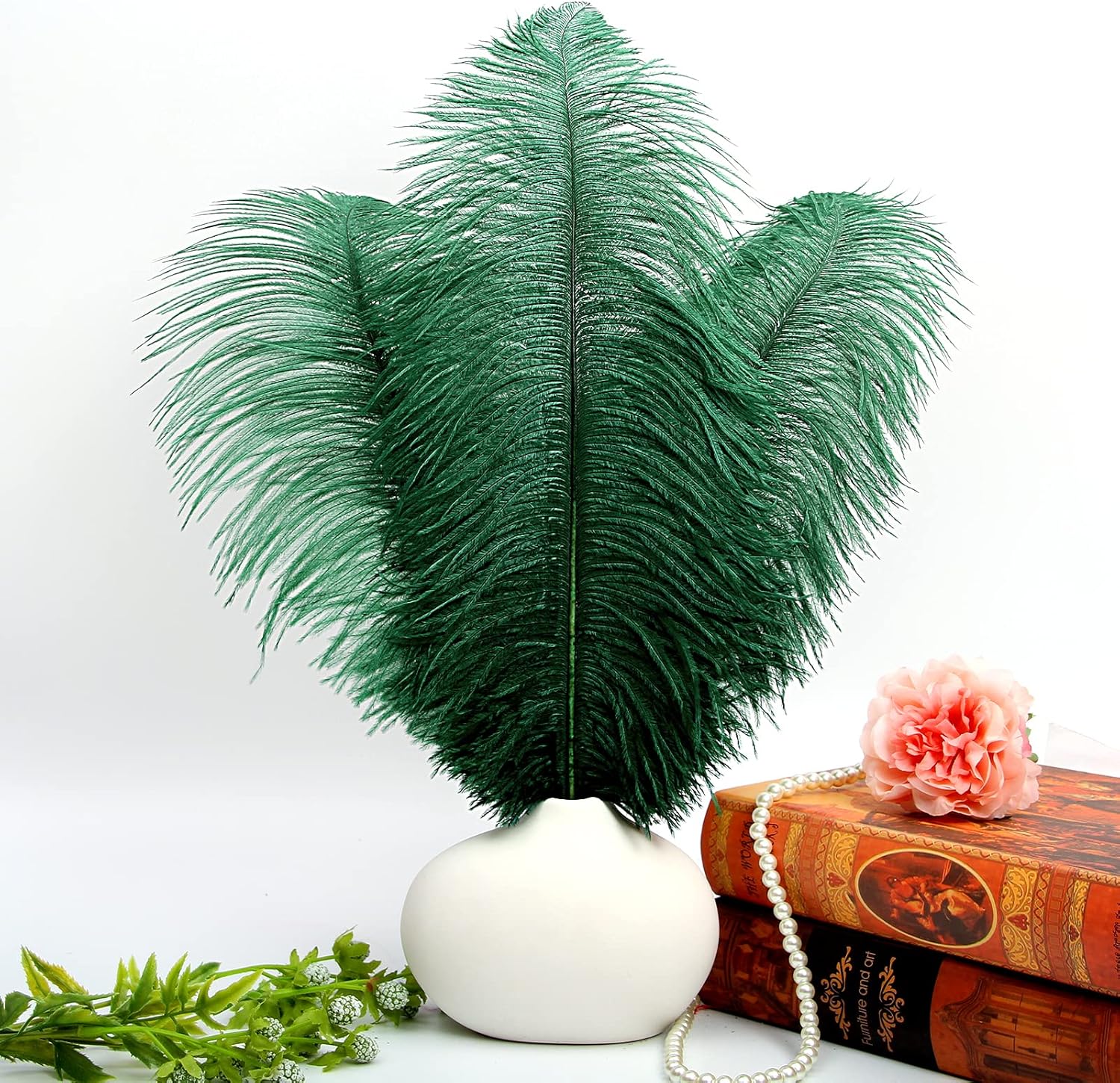 THARAHT Blackish Green Ostrich Feathers 12pcs Large Natural Bulk 12-14Inch 30cm-35cm for Wedding Party Centerpieces Mardi Gras Decoration Feather