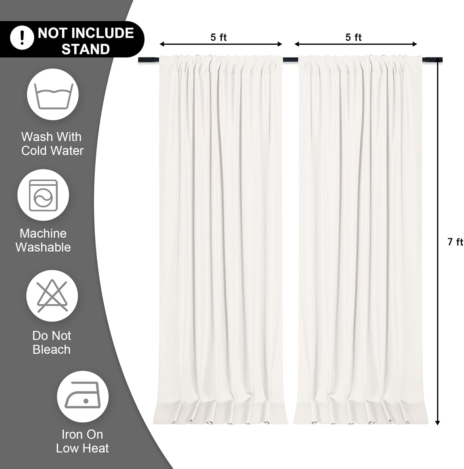 DWCN 10x7 FT Ivory Backdrop Curtains for Parties, Photography Backdrop Drapes with Rod Pockets for Wedding Decorations Stage Birthday Family Gatherings, 2 Panels 5ft x 7ft