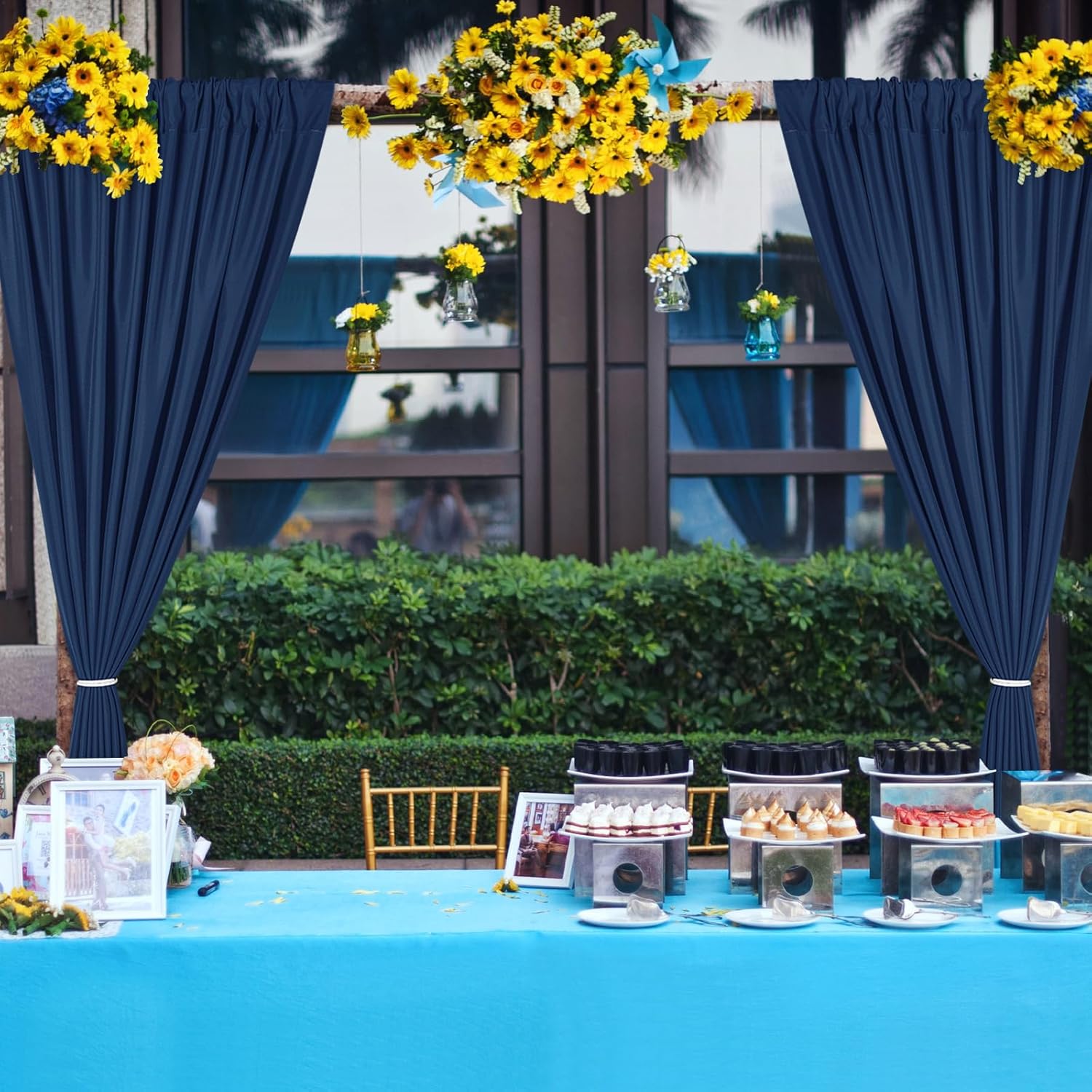 DWCN 10x8 FT Navy Blue Backdrop Curtains for Parties, Photography Backdrop Drapes with Rod Pockets for Wedding Decorations Stage Birthday Family Gatherings, 2 Panels 5ft x 8ft