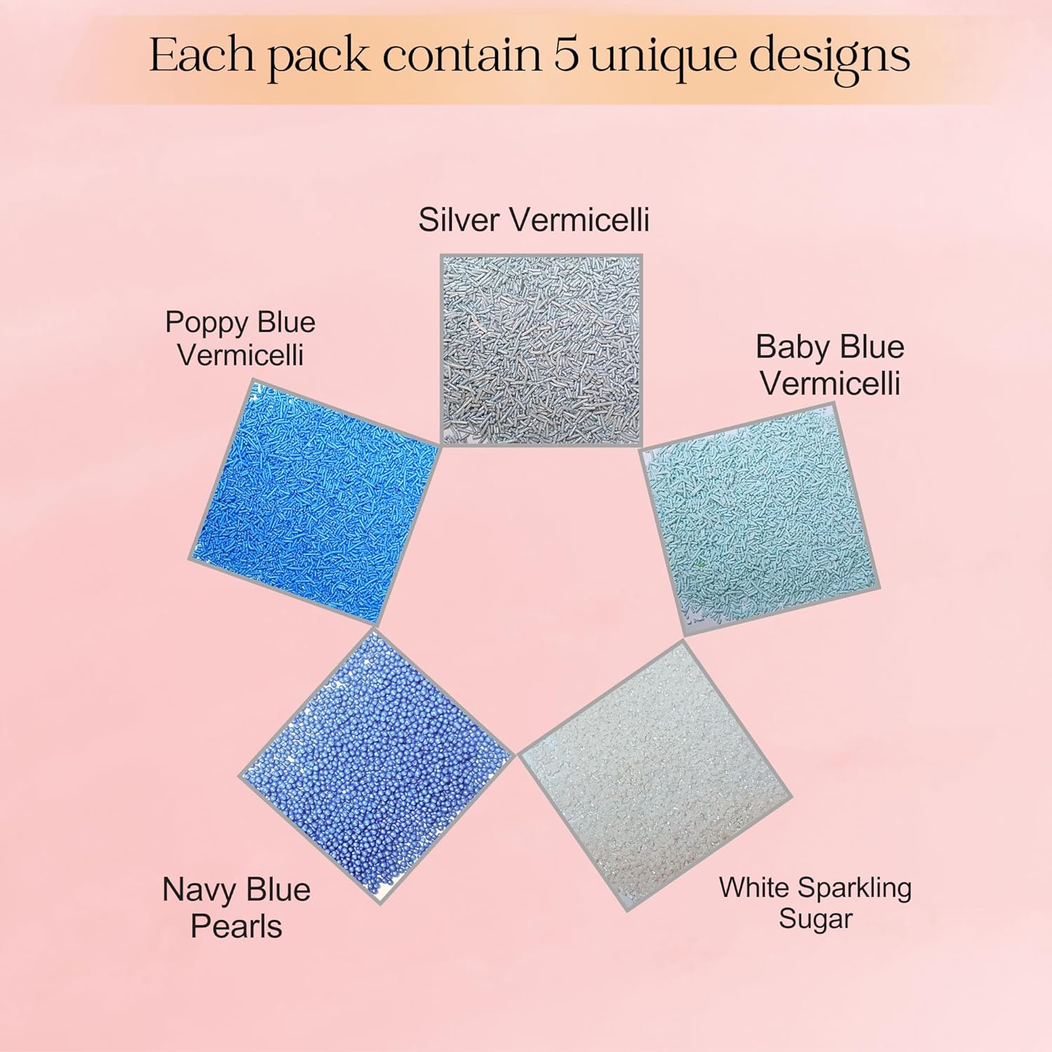 - Confect Sprinkles are made with the finest quality Ingredients & are soft to chew Sprinkles come in a unique pack of 5 assorted colors and sizes.