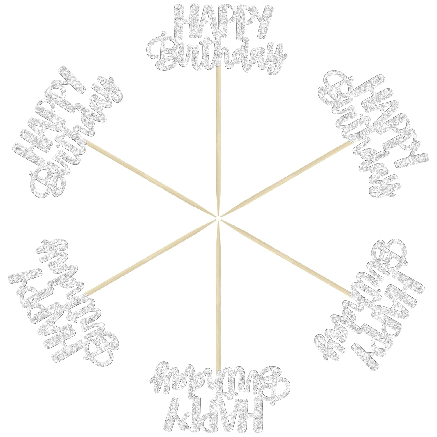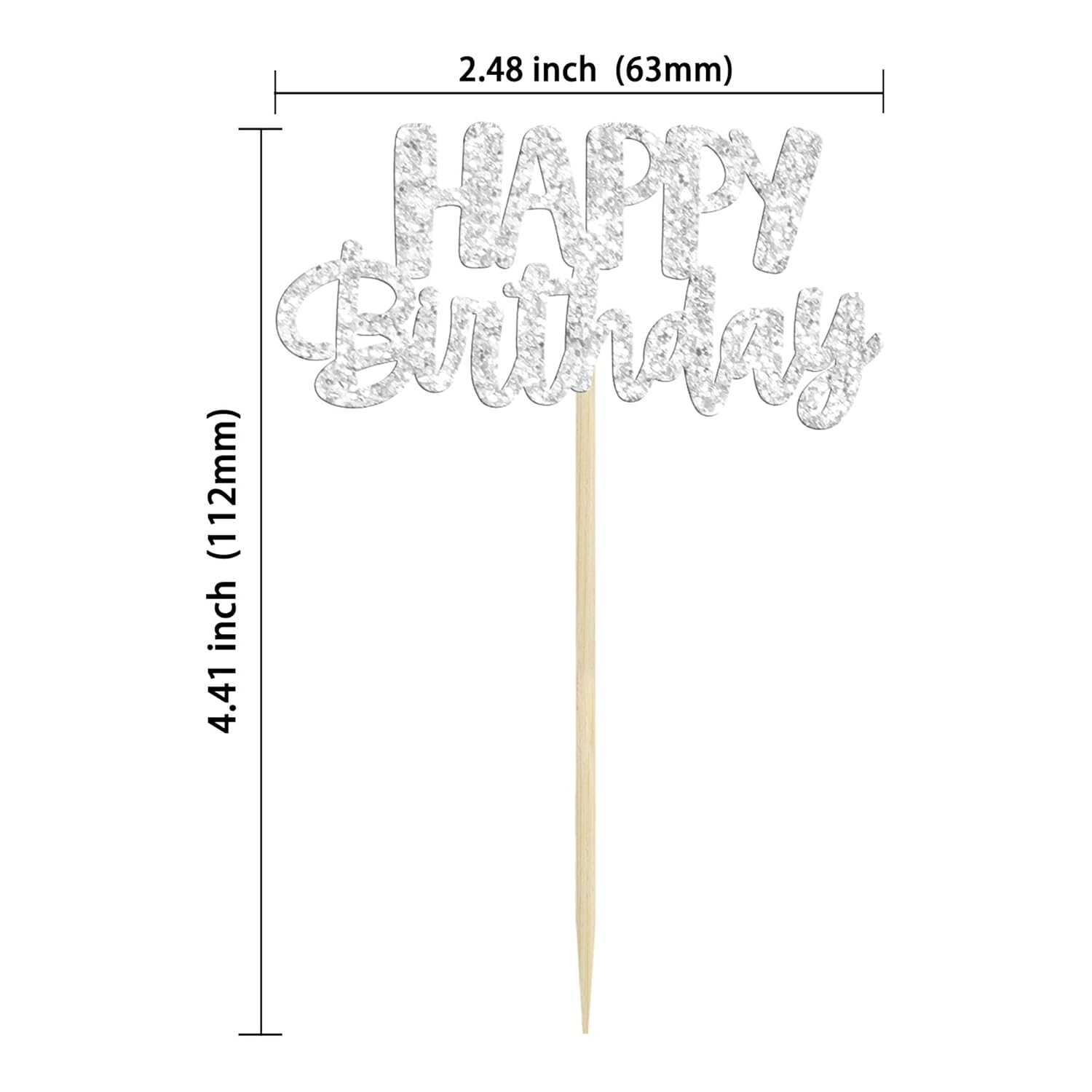 - đź’—đź’—Package included: 24Pcs Silver Happy Birthday Cupcake Toppers. You can insert into your cake directly, which make your cake more interesting.