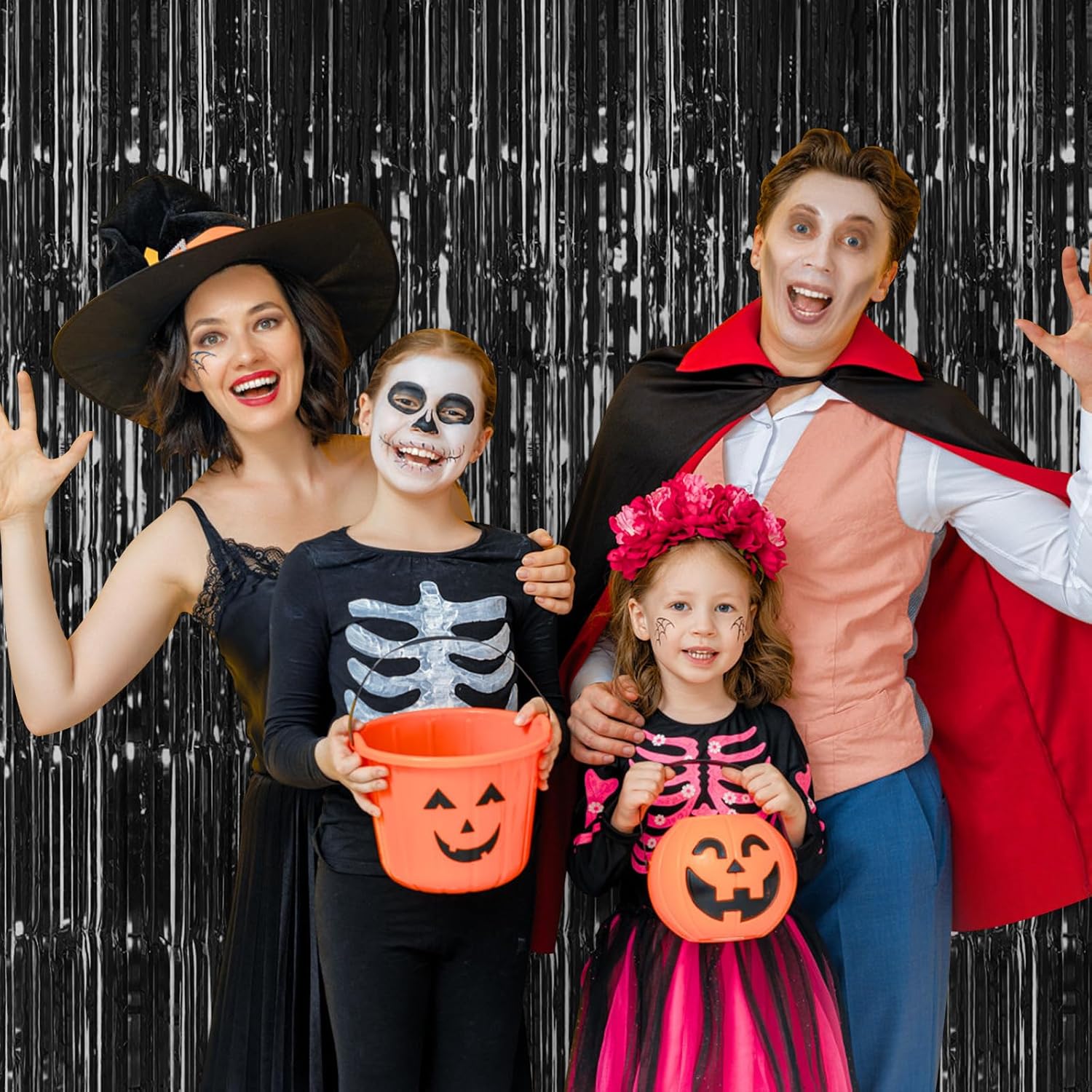 5 Pack Black Fringe Backdrop 3.2ft x 8.2ft Foil Curtain Tinsel Streamers for Birthday Party Decoration Wedding Christmas (Black)