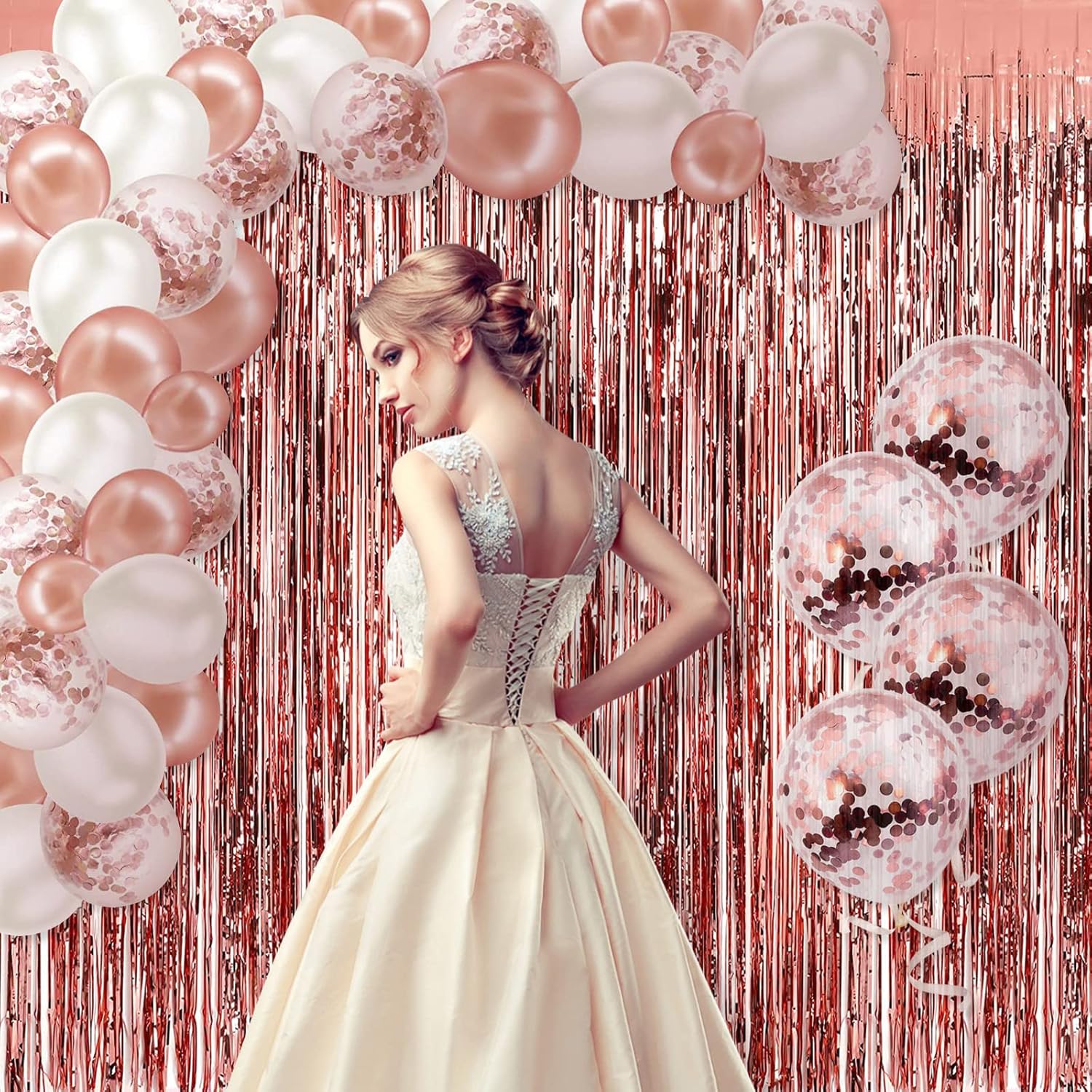 5 Pack Rose Gold Fringe Backdrop 3.2ft x 8.2ft Foil Curtain Tinsel Fringe Curtains for Birthday Party Decoration Wedding Christmas Decoration