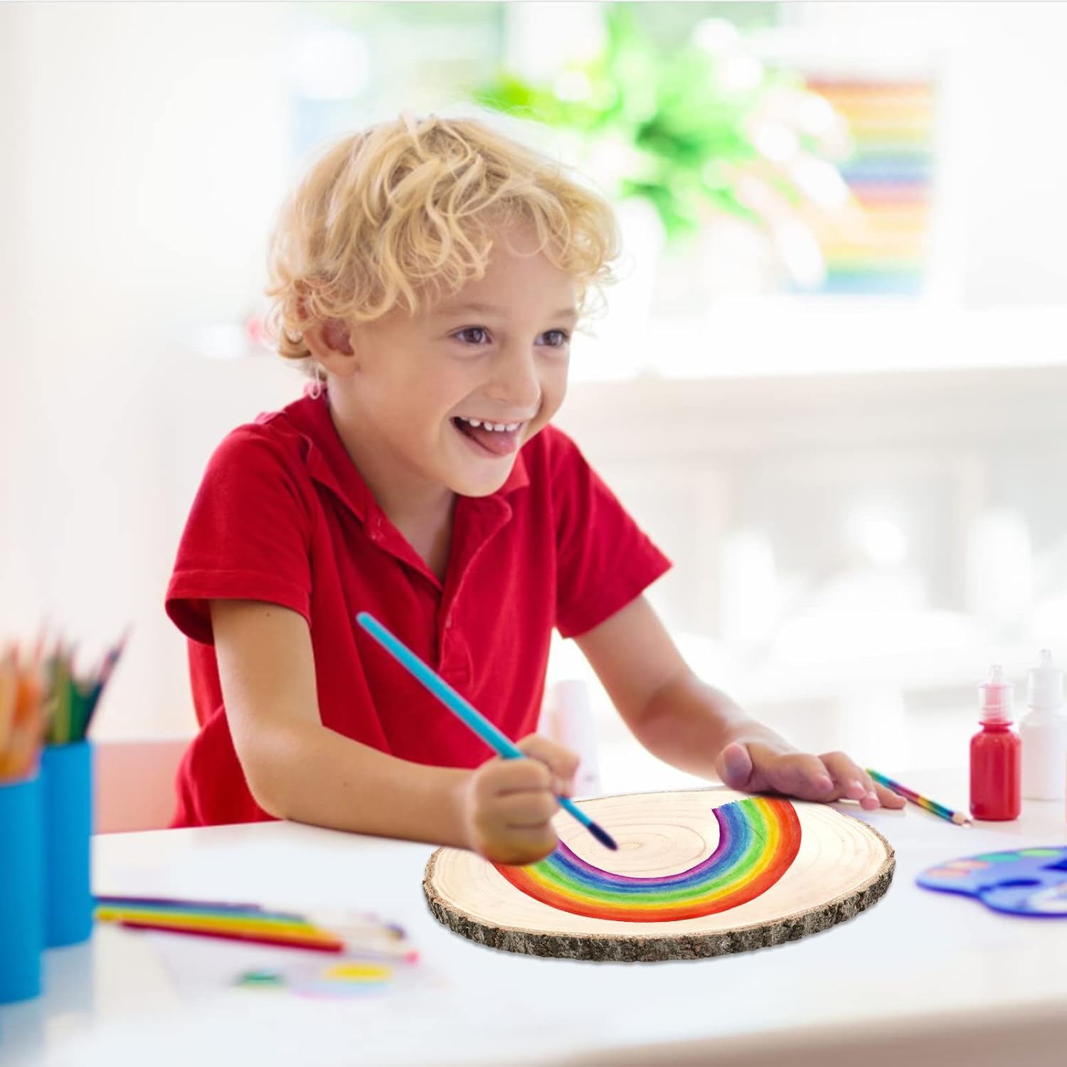 - DIY Various Wood Crafts: You can pick up a paintbrush and draw on it, or carve it with a knife, or write your favorite words. Meanwhile, these wood discs can be used as wooden cake stands, wedding centerpieces, bases for hanging flower pots, original wooden tables, etc