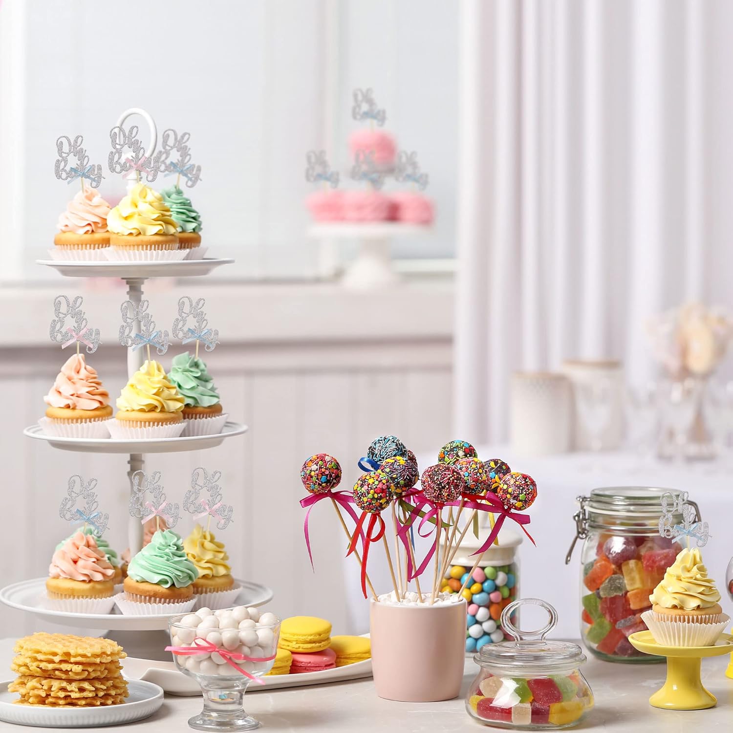 - ๐๐Package included: 36Pcs Silver Oh Baby with Bowknot Cupcake Toppers. They are assembled in advance, you can decorate your cake directly, which make your cake more interesting.