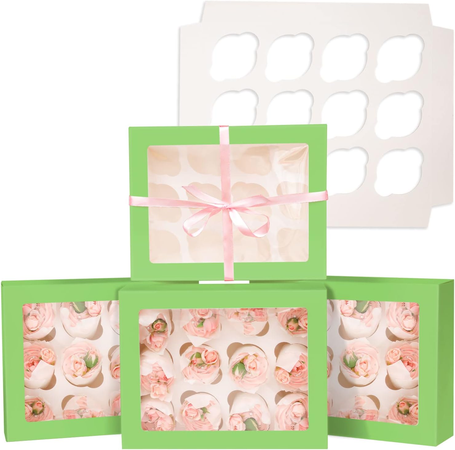 12 Cupcake Containers 10-Packs Avocado Cupcake Box Cupcakes Carrier, 12 Cupcake Boxes with Window 13"x10"x3.5"(Auto-pop up)