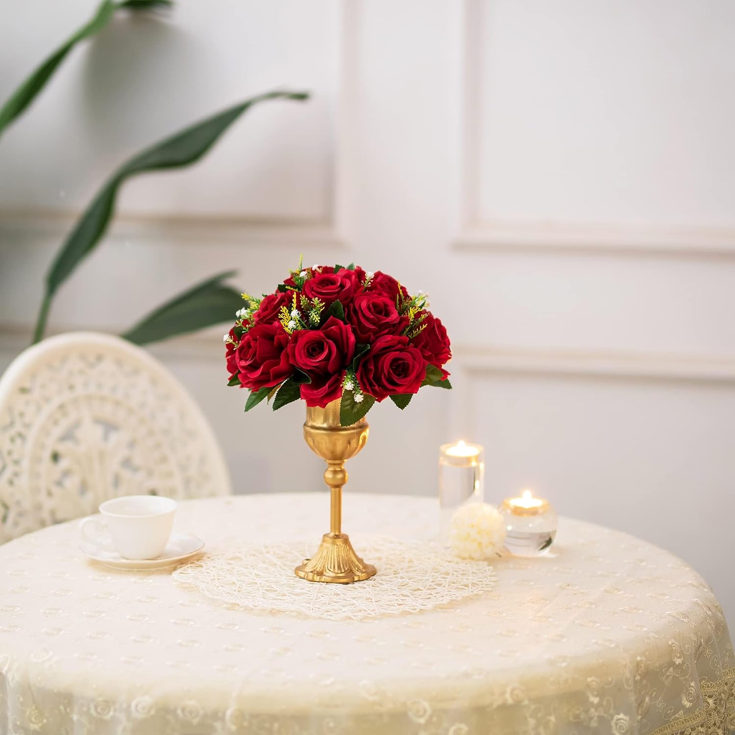- GREAT VALUE for MONEY: They are elegant&sophisticated and look like the REALISTIC flowers with beautiful thick and lush roses (8cm diameter), scattered little white flowers (baby’s breath)and greenery. The flowers are perfectly symmetrical and full. They are economical and you can save such a package, compared with real flowers in events.