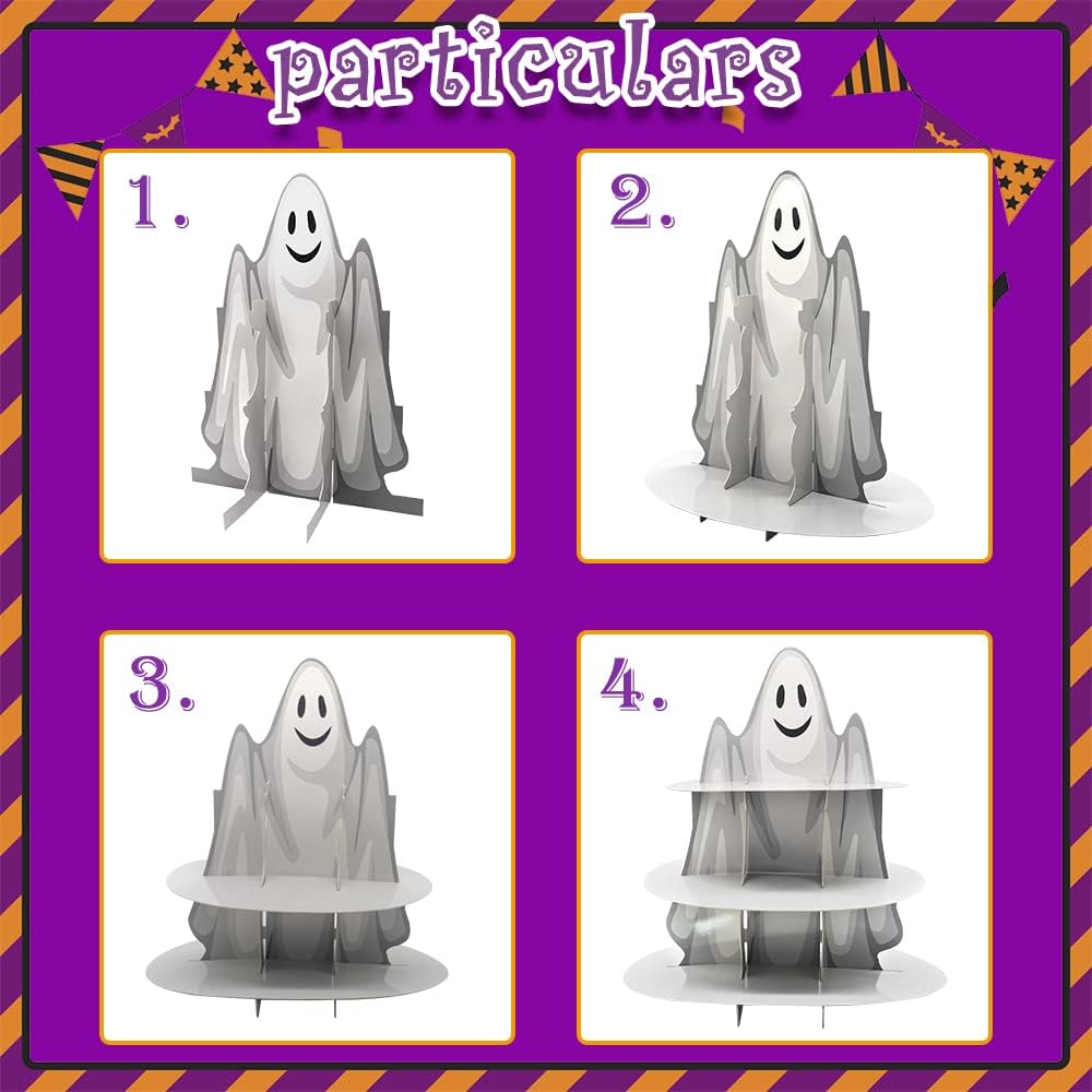 - 『HIGH QUALITY MATERIAL』: Halloween cupcake tower using strong cardboard material, non-toxic, odorless, reusable, bright in color and environmentally friendly. The cross structure that makes the Halloween ghost cupcake tower more stable. Halloween cake tower holders don't bend easily and can be used more than once. If the surface gets dirty, just wipe it with a damp cloth and it will look new.