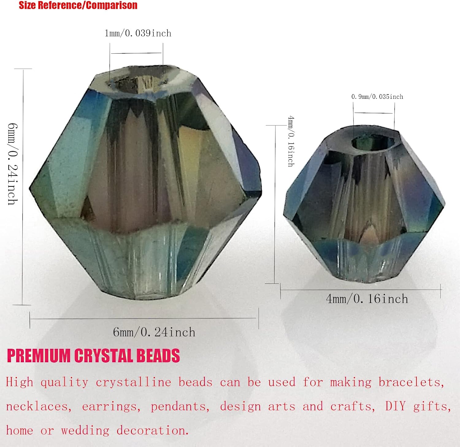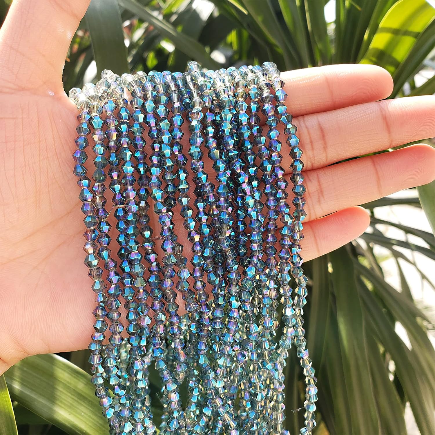 - 【QUALITY MATERIAL】Made of high quality crystal glass (synthetic quartz),odorless and non-toxic. Crystal with multi-faceted Bicone shape design will refract light,multi-faceted cutting, not easy to break or deform, durable, different light will show different colors and add a gorgeous glow to your jewelry or crafts. The actual color effect of the bicone beads is very good, rich, uniform and bright, better than the picture, worth trying.