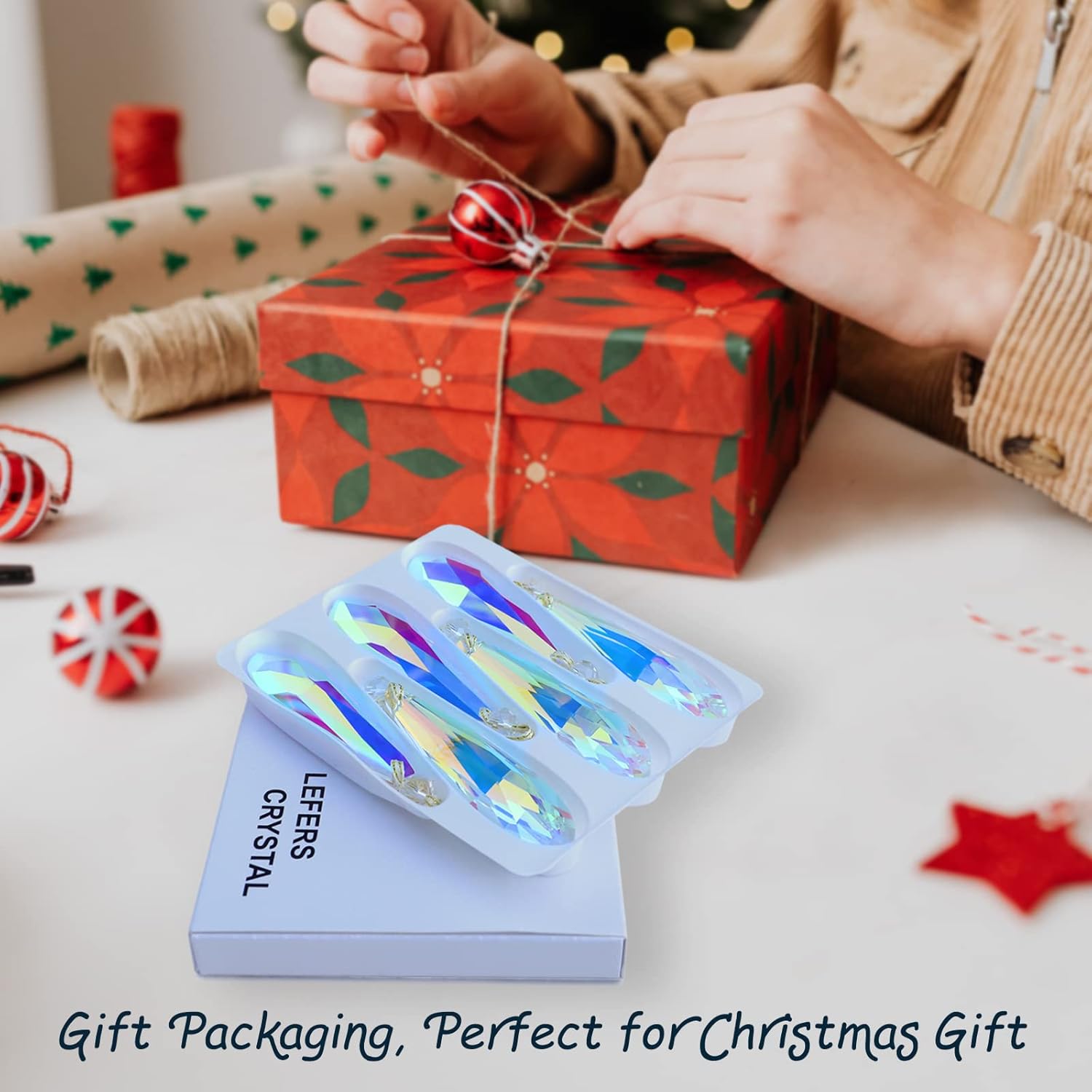 - 【Elegant Crystal Ornaments】Premium quality of crystal glass hanging ornament,Clear,Sparkly! Not Acrylic Not Plastic.Unlike ceramic and plastic products, it is a elegant Christmas ornament more delicate, vivid