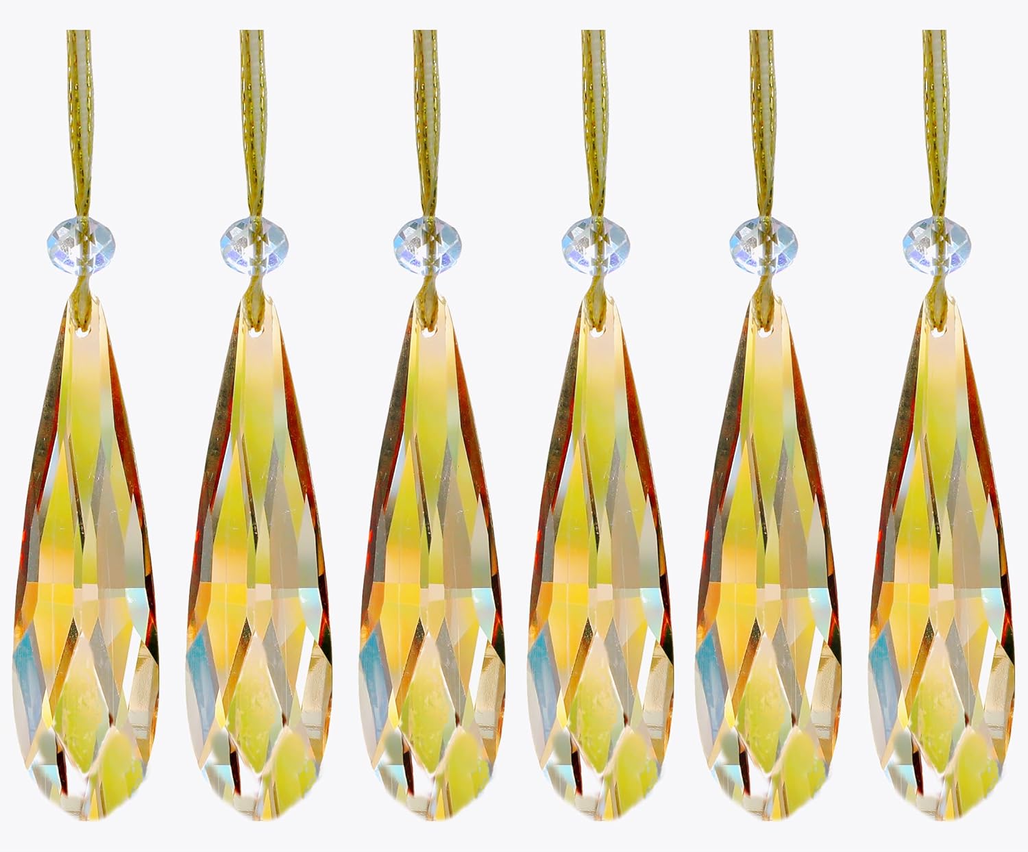 Crystal Glass Christmas Ornaments, 6Pcs Teardrop Prism Hanging Crystals for Christmas Tree,Centerpieces,Wedding,Party Decor (Gold)