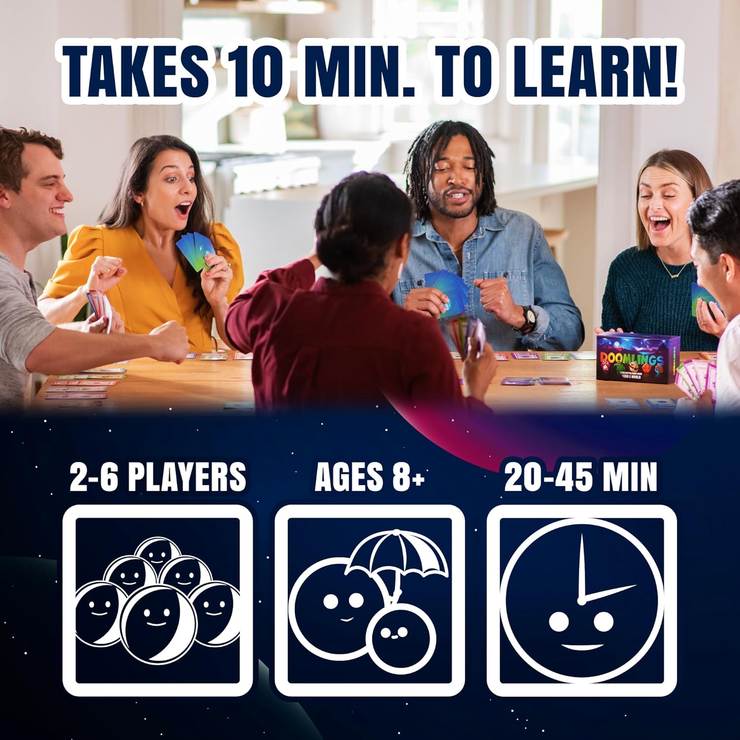 - Who's it For? Perfect for game night enthusiasts, families, or anyone who enjoys a good laugh with a healthy dash of strategy! Doomlings is perfect for 2-6 players, ages 8+, making it fun for adults and kids alike