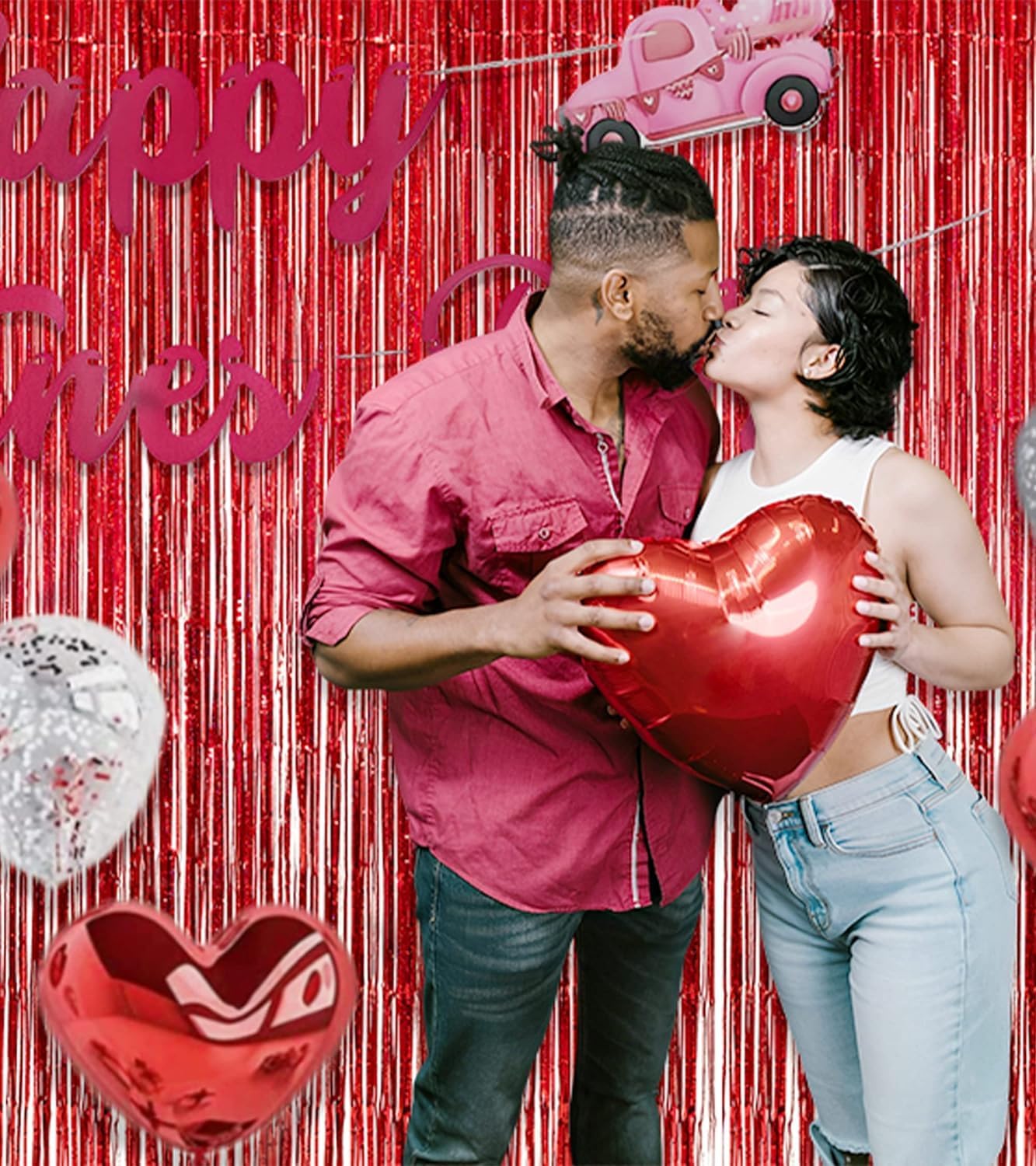 Foil Fringe Curtain 4th of July Decorations - Red Blue Metallic Tinsel Photo Booth Backdrop Party Steamers Curtains for Birthdays Christmas New Years Valentines Bachelorette Parties