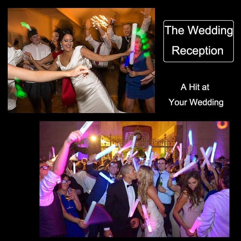 - Glow Foam Sticks For Wedding:These Colorful Glow Lights Come With 3 Flashing Modes. Just Press The Power Button At The Bottom Of The Foam Sticks To Switch, Fast Flashing, Slow Flashing, And Alternate Flashing For Your Choice. Simple Operation And Rich Colors, Easy To Create Perfect Party Atmosphere