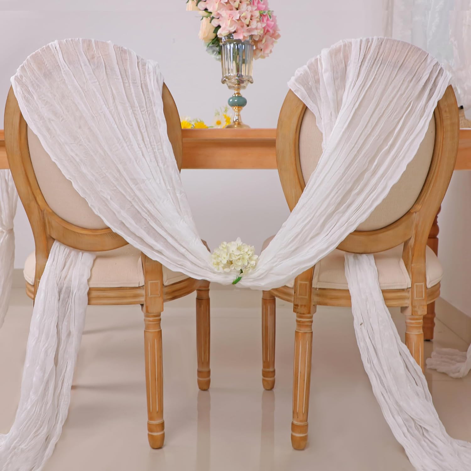 - 【MULTIFUNCTIONAL】 Wedding table runner can be also used as gauze decorative napkins. Also can be used for chair tieback decoration and for a wedding arch, adds a romantic atmosphere to your wedding or special party to impress guests. Incorporate rustic elegance look into your home or party space and make it ideal for special occasions where you need to host larger groups