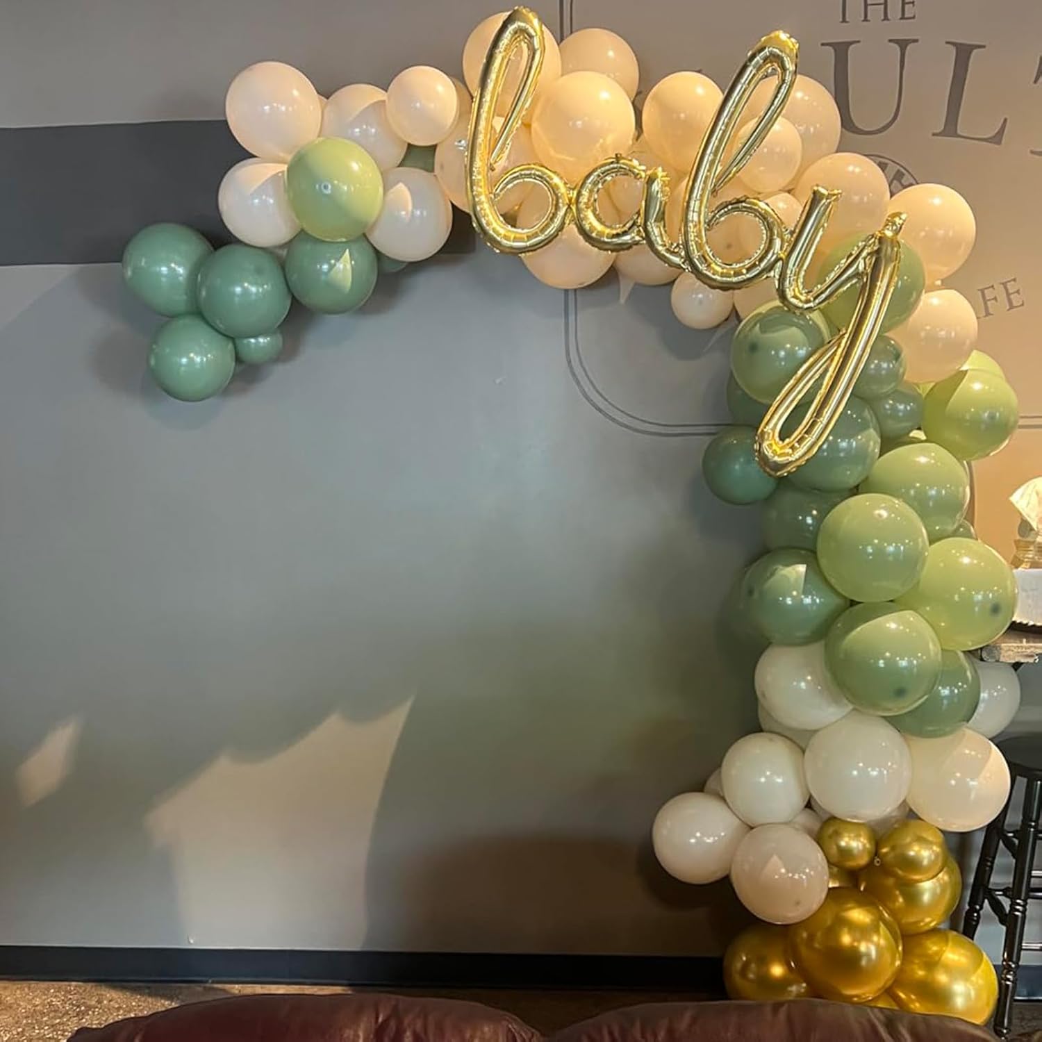 Balloons Green Gold, 60 Packs 12 Inch Retro Sage Green Gold Metallic Balloon, Olive Green White Latex Balloons for Wedding, Birthday, Baby Shower, Safari Jungle Party, Anniversary Decorations