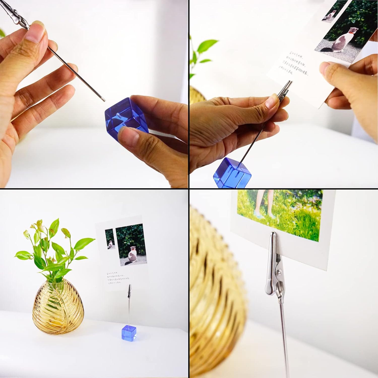 - ★Unique Decor: The photo clip holders comes with 10 rainbow-colors colors cube bases. The high clear bases will create the most beautiful refraction when the sunlight or any other kind of lights hits them