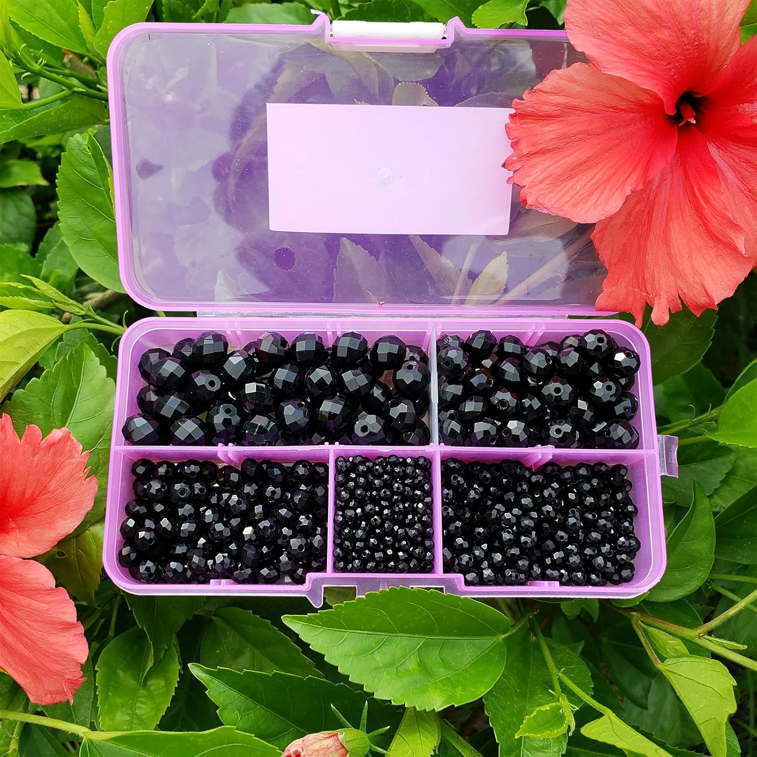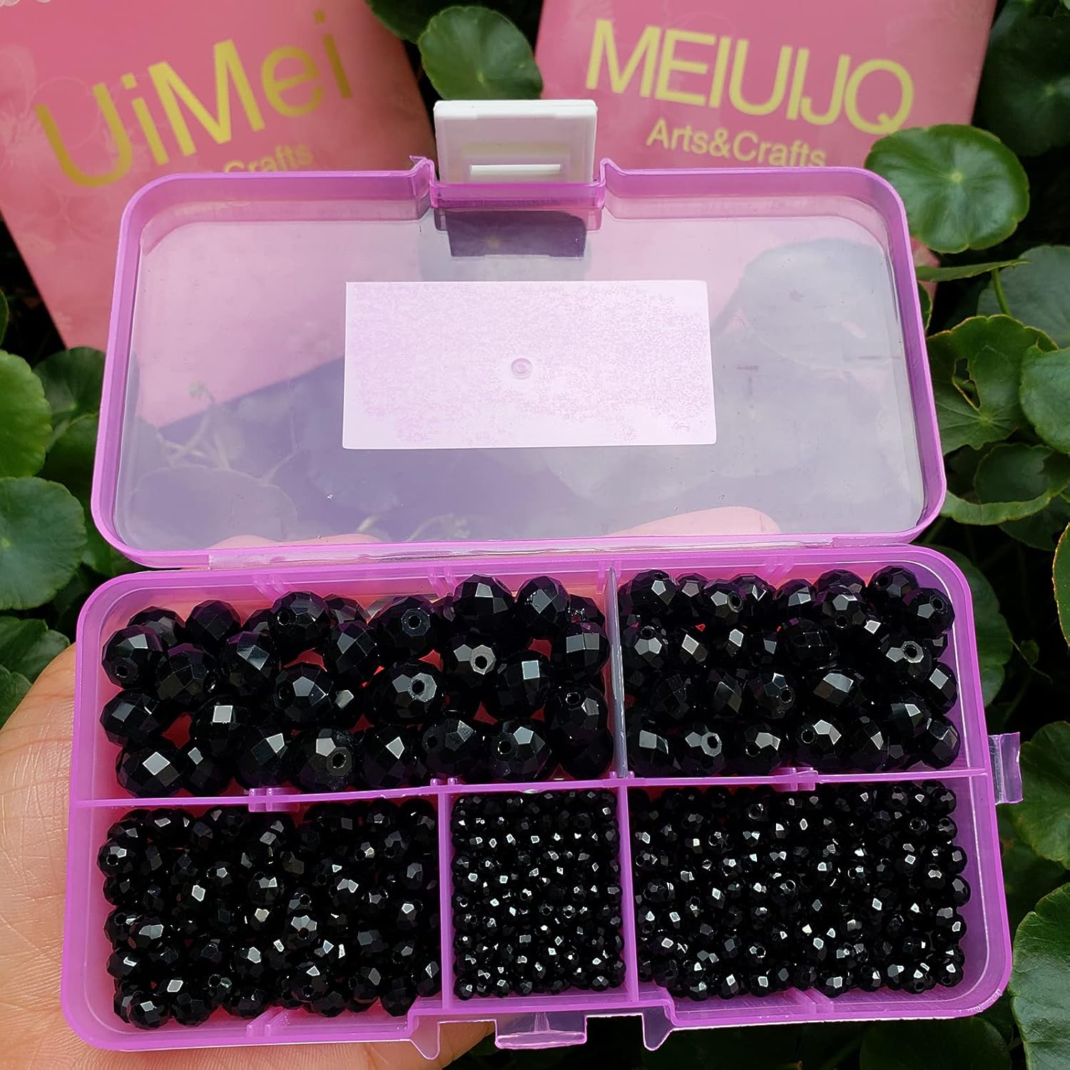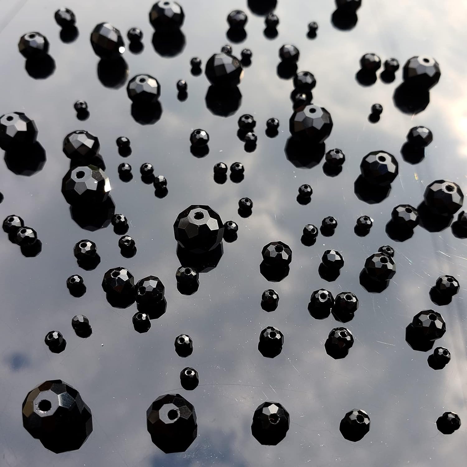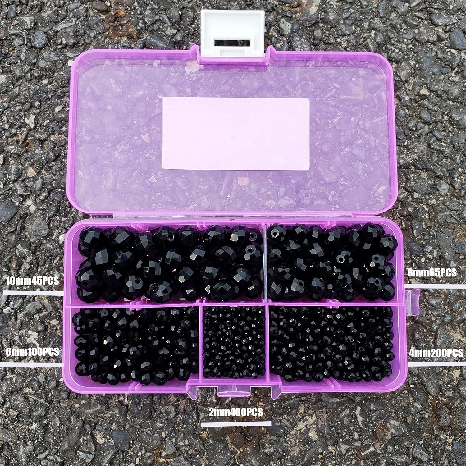 - 【PACKAGING and SIZE】Package includes 810Pcs black rondelle crystal glass beads in 5 different sizes ,400pcs 2mm,200pcs 4mm,100pcs 6mm,65pcs 8mm and 45pcs 10mm faceted rondelle crystal glass beads.Sufficient quantity and various sizes to meet your various needs, you can combine them together to create delicate handicrafts according to your own preference.In addition, we provide you with some stretchy cord and add an organza bag.Let your family and friends enjoy DIY happy time together.