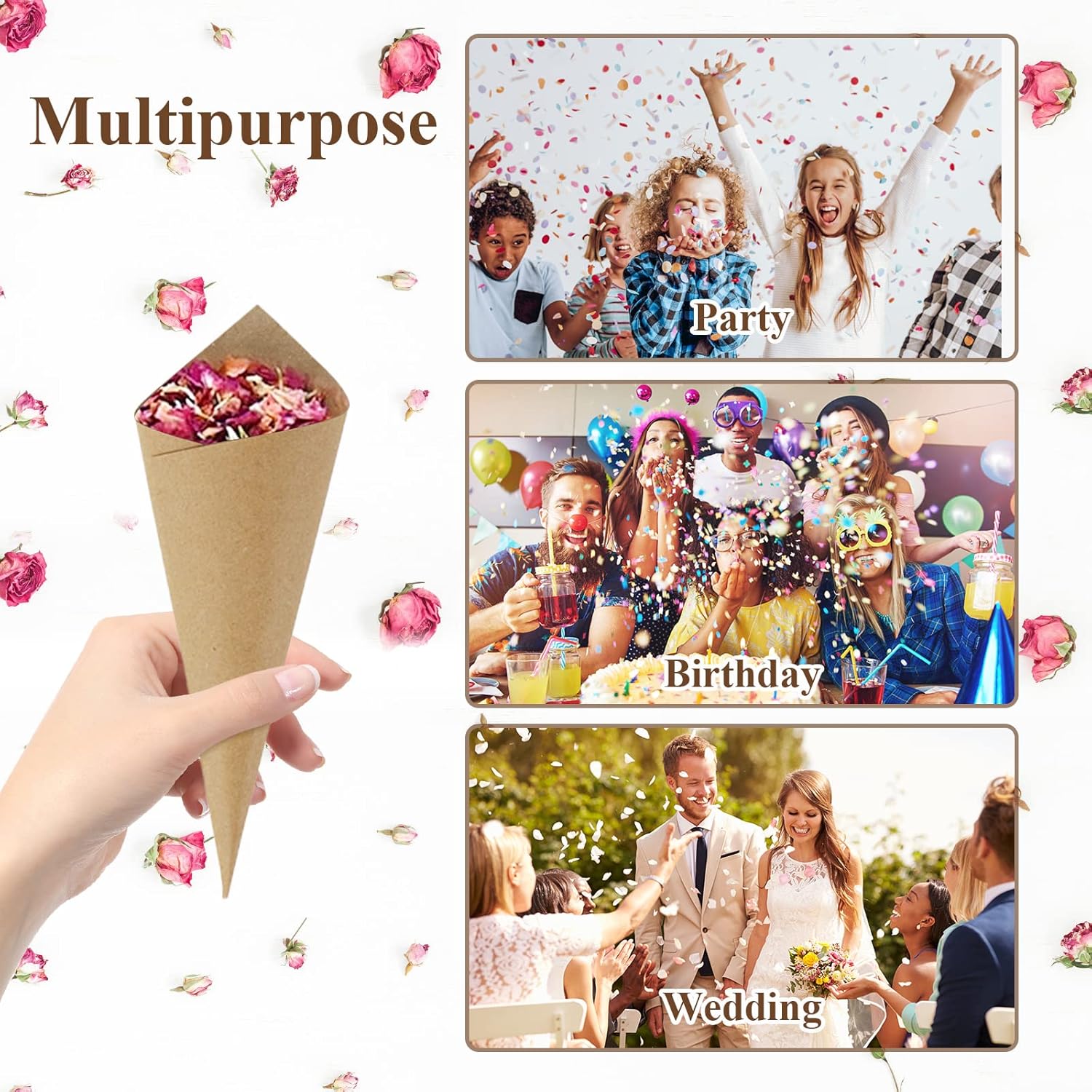 - 【Design】Paper cone is sent to you in the form of flat paper instead of cone. After receiving the goods, you only need to simply roll it into the shape of a confetti cone according to your needs. and just follow the steps for the paper cone box fold to get a stereoscopic paper cone box.