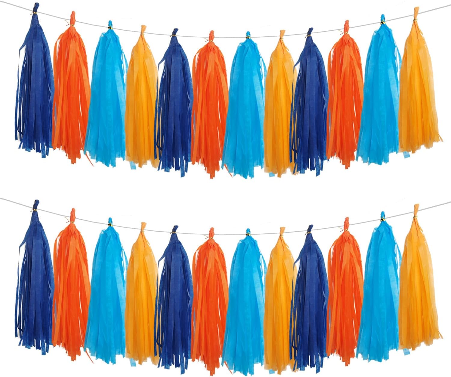 GAKA Orange and Blue Tassel Garland Tissue Paper Tassel Banner,Table Decor,Tassels Party Decor Supplies for Theme Party,Wedding,Birthday,Anniversary,DIY Kits,20 PC