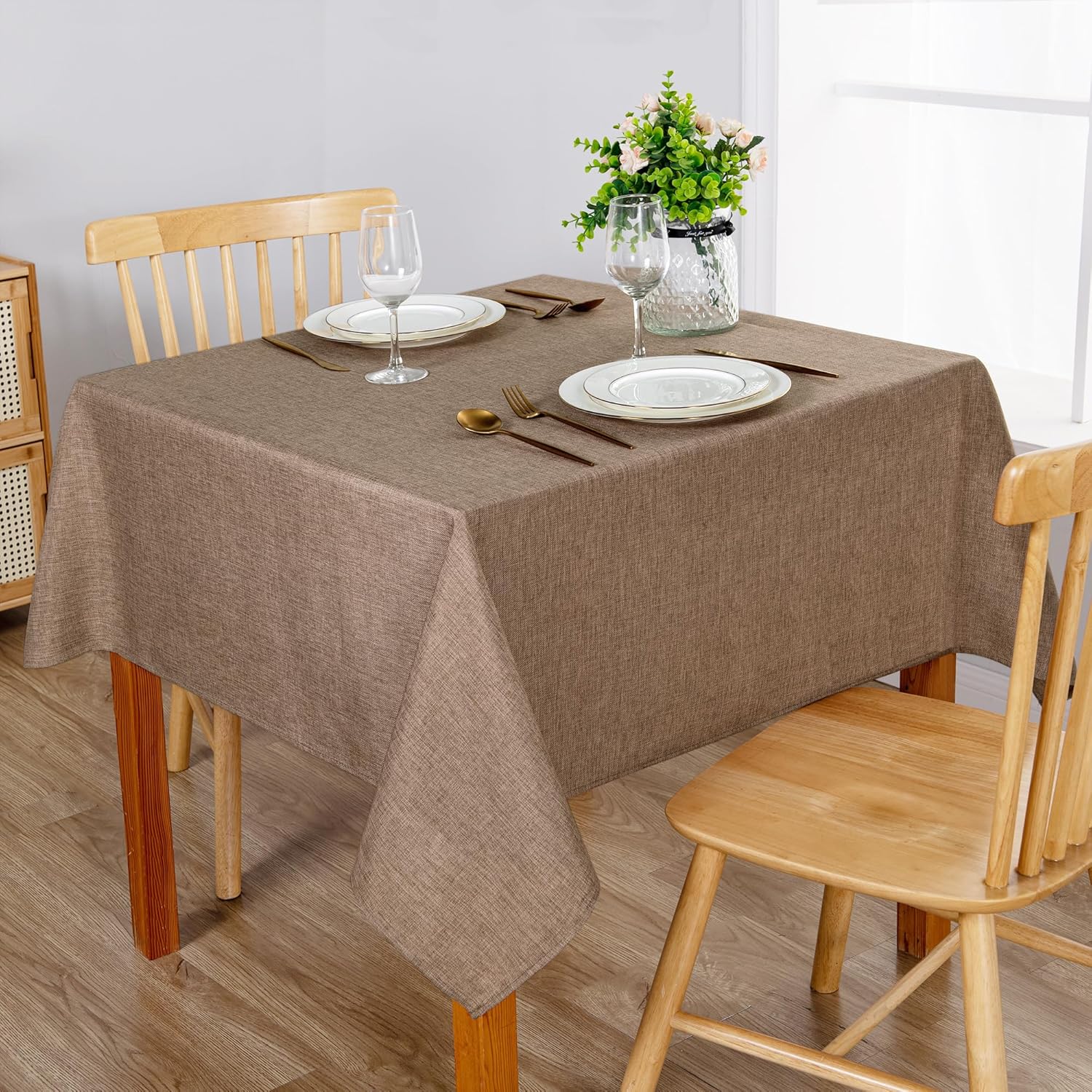 Hiasan Faux Linen Square Tablecloth - Wrinkle and Stain Resistant Washable Table Cloth for Kitchen Dining Room Holiday Table Cover for Party Dinner, Khaki, 60 x 60 Inch
