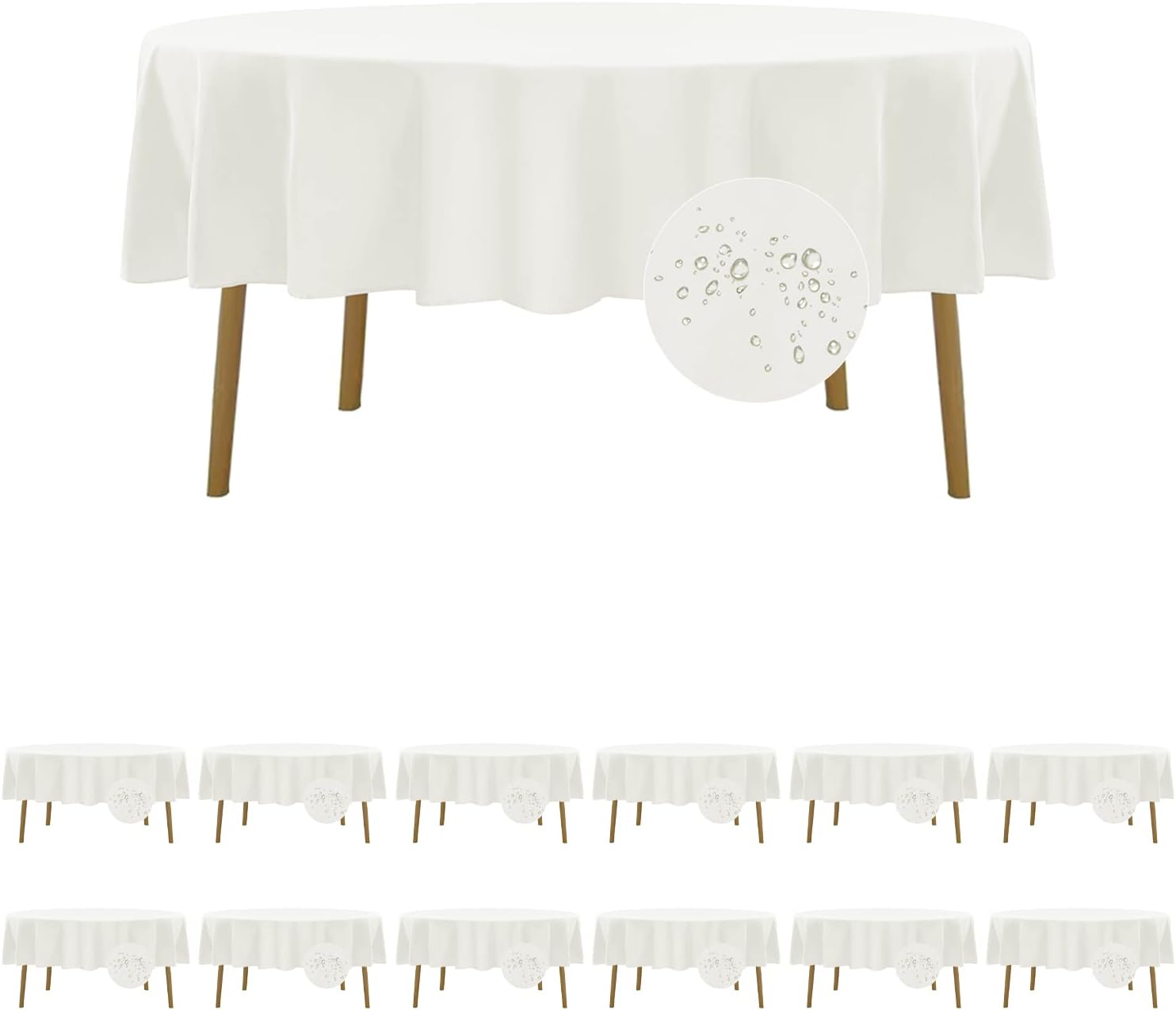 Fokitut 12 Pack Waterproof Round Tablecloth, 70 Inch, Stain Resistant and Wrinkle Polyester Table Cloth, Fabric Table Cover for Kitchen Dining, Wedding, Party, Holiday Dinner-Ivory